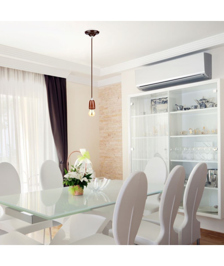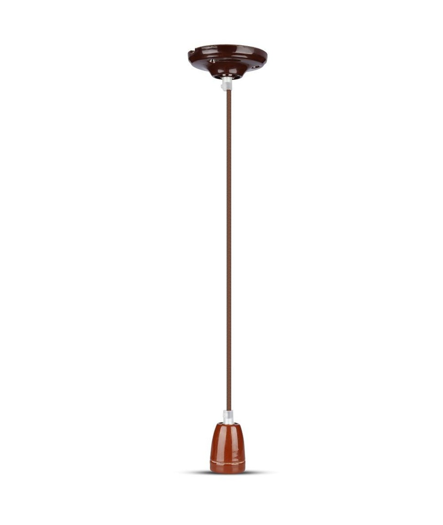 E27 porcelæn pendelophæng, brun - Max 60W, Ø4,7cm, 68cm ledning, uden lyskilde V-TAC Udvid