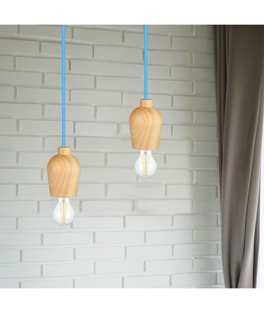 Billigst på PriceRunner E27 Træpendel Lampe med blå ledning kombinerer naturlige materialer med moderne design.