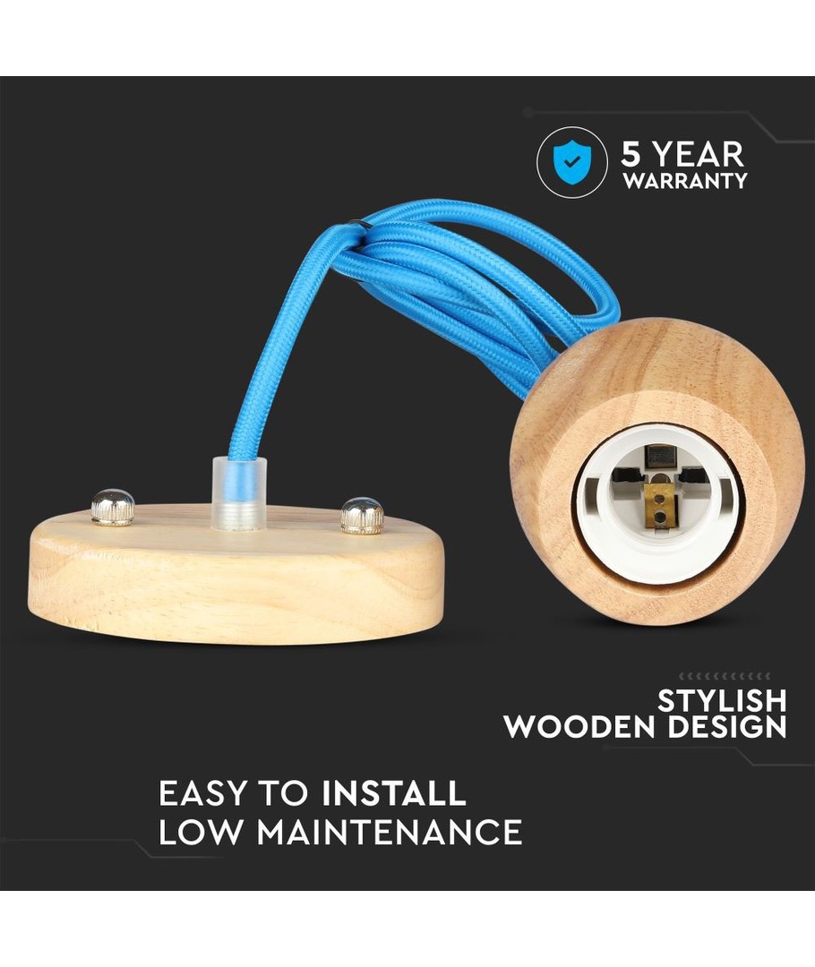 E27 pendelophæng i træ med blå ledning - Max 60W, elegant design, uden lyskilde V-TAC Udvid