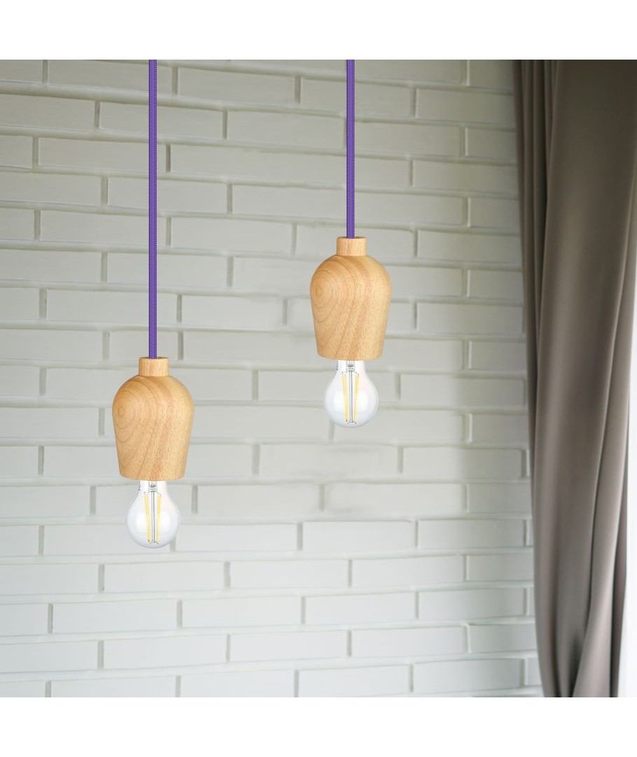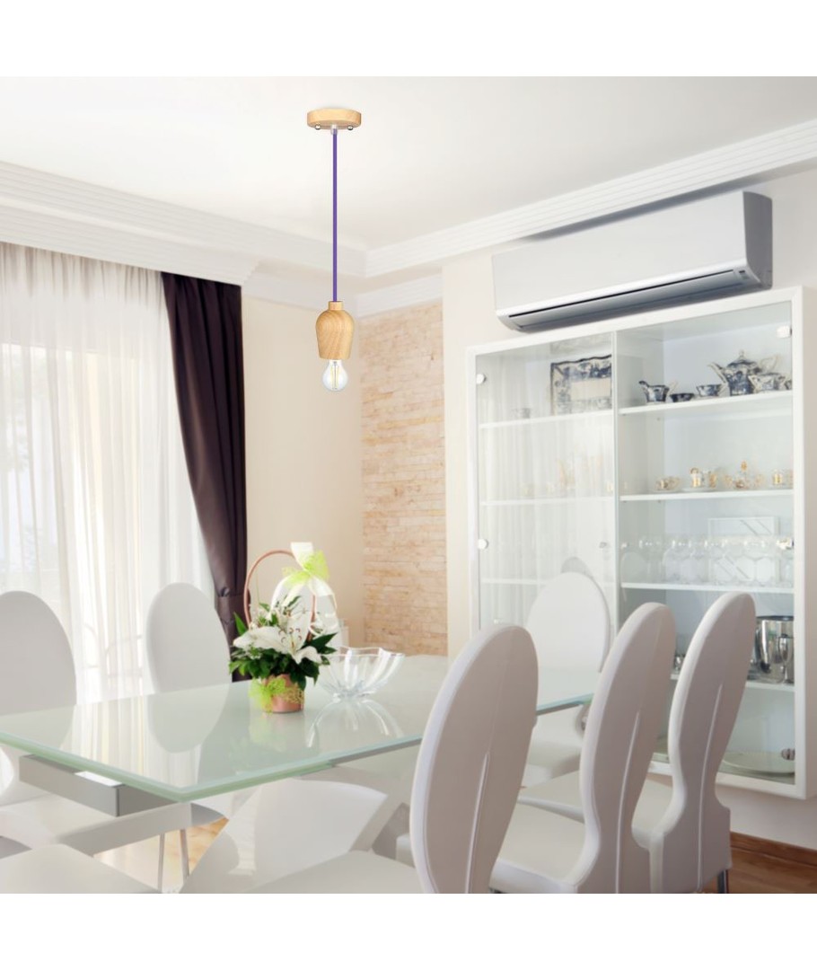 Billigst på PriceRunner E27 Træ Pendel Lampe med lilla ledning er en stilfuld belysningsløsning til moderne indretninger.