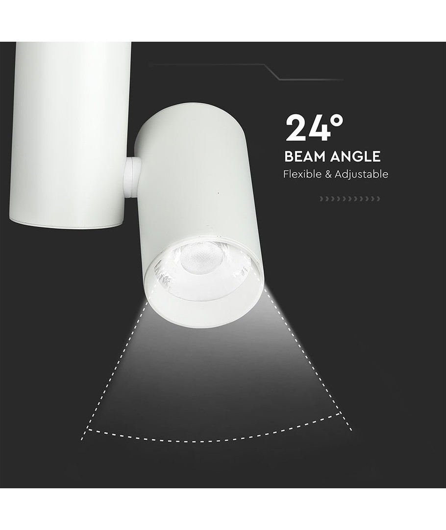 Skinnespottet er en del af V-Tac Pro serien, hvilket garanterer 5 års producentgaranti. Det er udviklet til at have en lang og sikker driftstid på op til 30.000 timer, takket være brugen af LED-komponenter af højeste kvalitet. Den professionelle driver og effektive køling sikrer et minimalt fald i lysstyrke over tid.