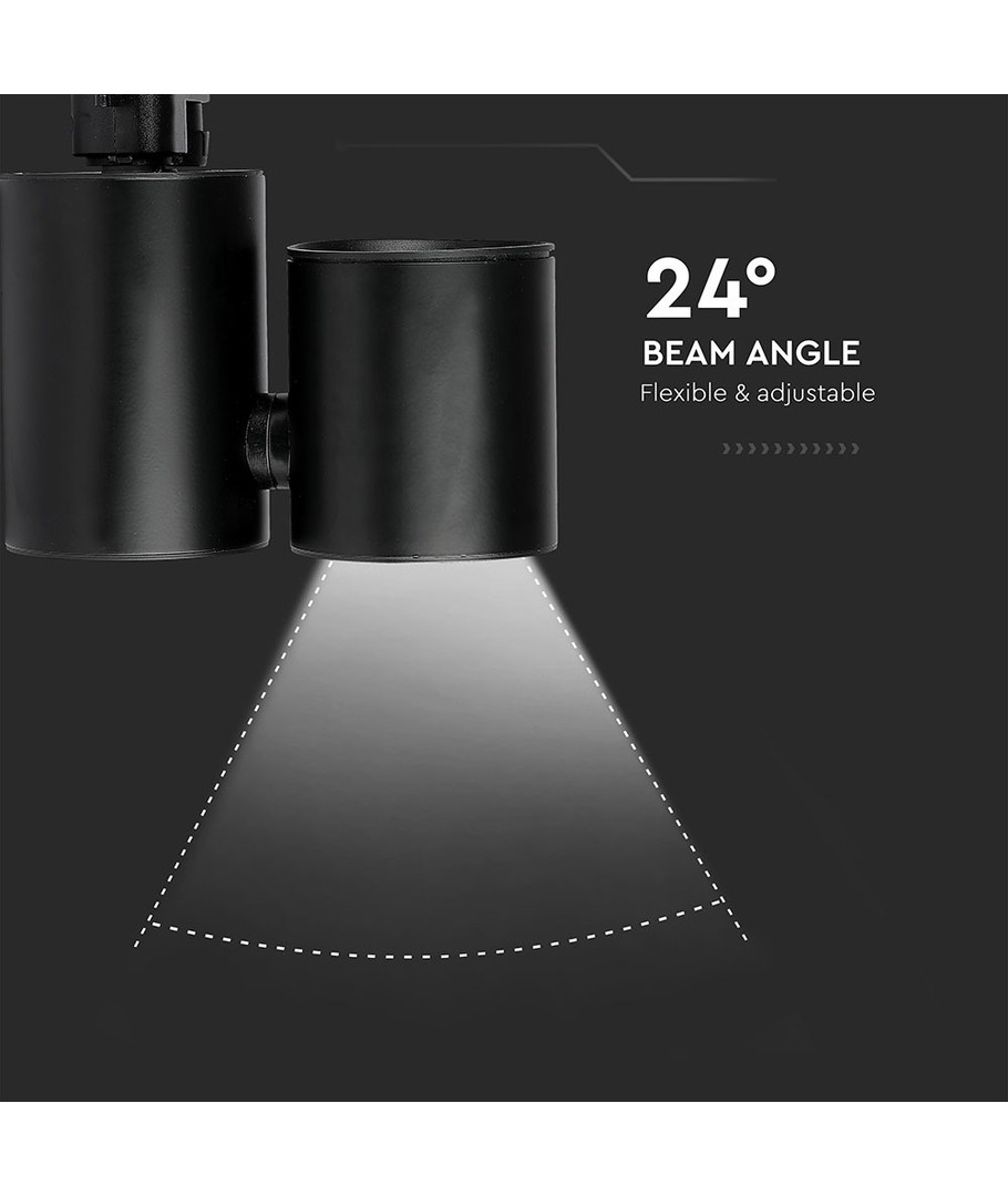 Dette skinnespot er designet til at opfylde de højeste krav til belysningskvalitet og effektivitet. Med en effekt på 15W leverer det en kraftfuld lysstyrke på 1350 lumens, ideel til områder, der kræver fokuseret lys. Den smalle strålevinkel på 24 grader sikrer et kontrolleret lys, der fremhæver specifikke områder eller objekter.