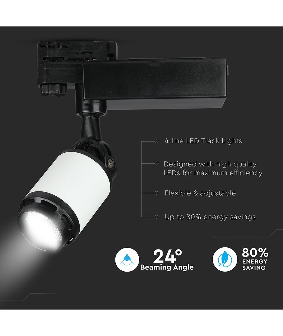 Dette skinnespot er en del af V-Tac Pro serien, som lover kvalitet og holdbarhed med en 5 års producent garanti. Takket være LED-teknologi af højeste kvalitet, kan du forvente en driftstid på op til 30.000 timer uden betydeligt fald i lysstyrke. Den professionelle og driftssikre driver sammen med god køling sikrer en lang produktlevetid.