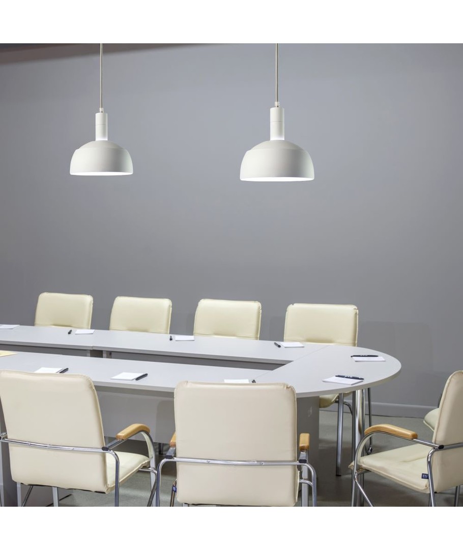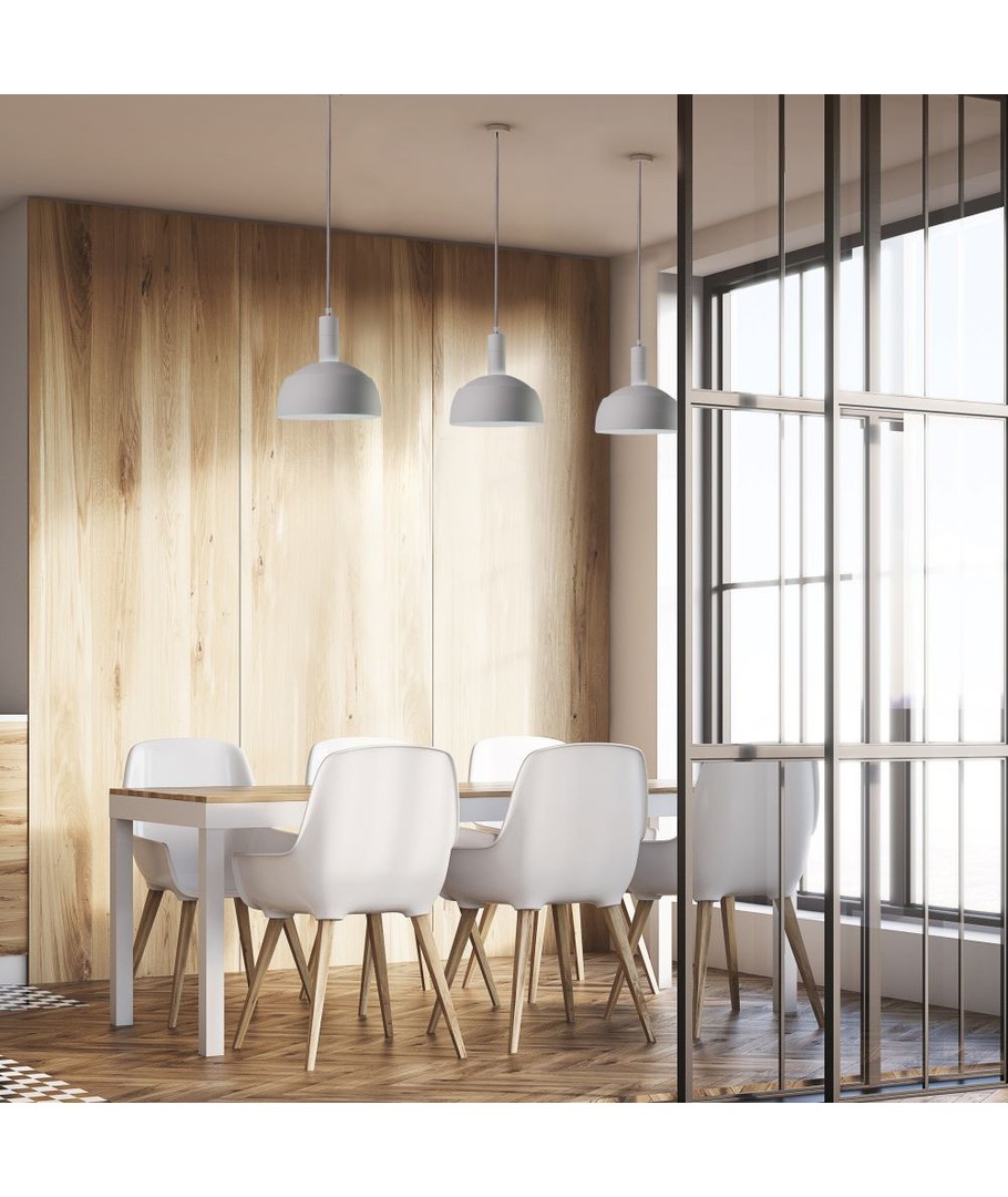 Med den enkle installationsproces kan du hurtigt og nemt tilføje denne belysningsløsning til dit hjem eller kontor. Den lette vægt opnås gennem brugen af aluminium, mens plastikhængningen sikrer en let og stabil ophængning. Det moderne design i hvid giver mulighed for at integrere denne lampe i ethvert rum uden at det dominerer indretningen.