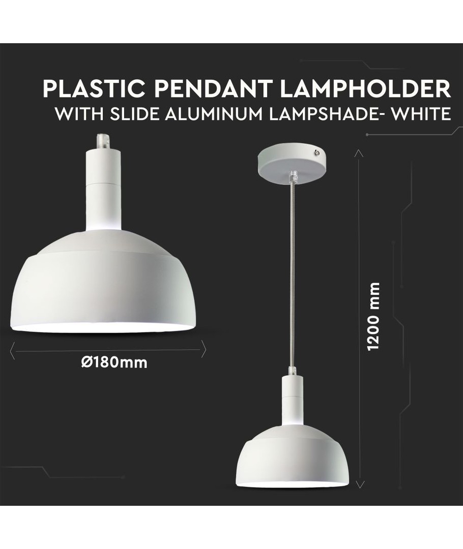 Forvandl dit rum med en stilfuld og funktionel belysningsløsning, der tilføjer en moderne touch til enhver indretning. Dette setup kombinerer en E14 fatning med et smukt plastik ophæng og en skydelampeskærm i aluminium. Denne elegante hvide lampeskærm passer perfekt til ethvert rum, der kræver en enkel og stilren belysning.