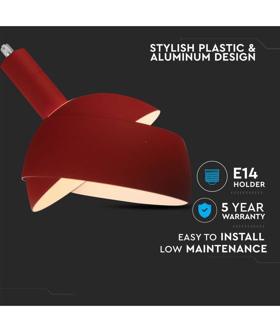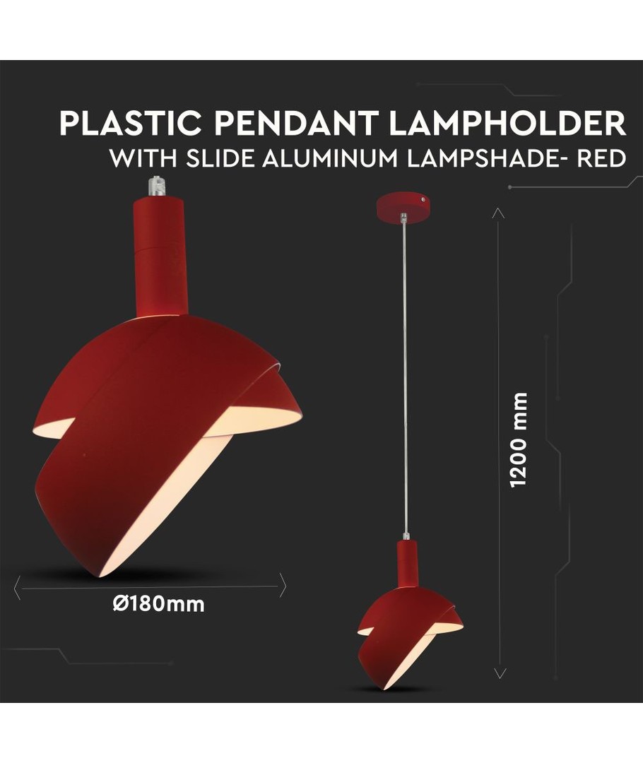 Tilfør et moderne præg til dit hjem med denne røde plast pendelfatning og oplev både funktion og design i én løsning.