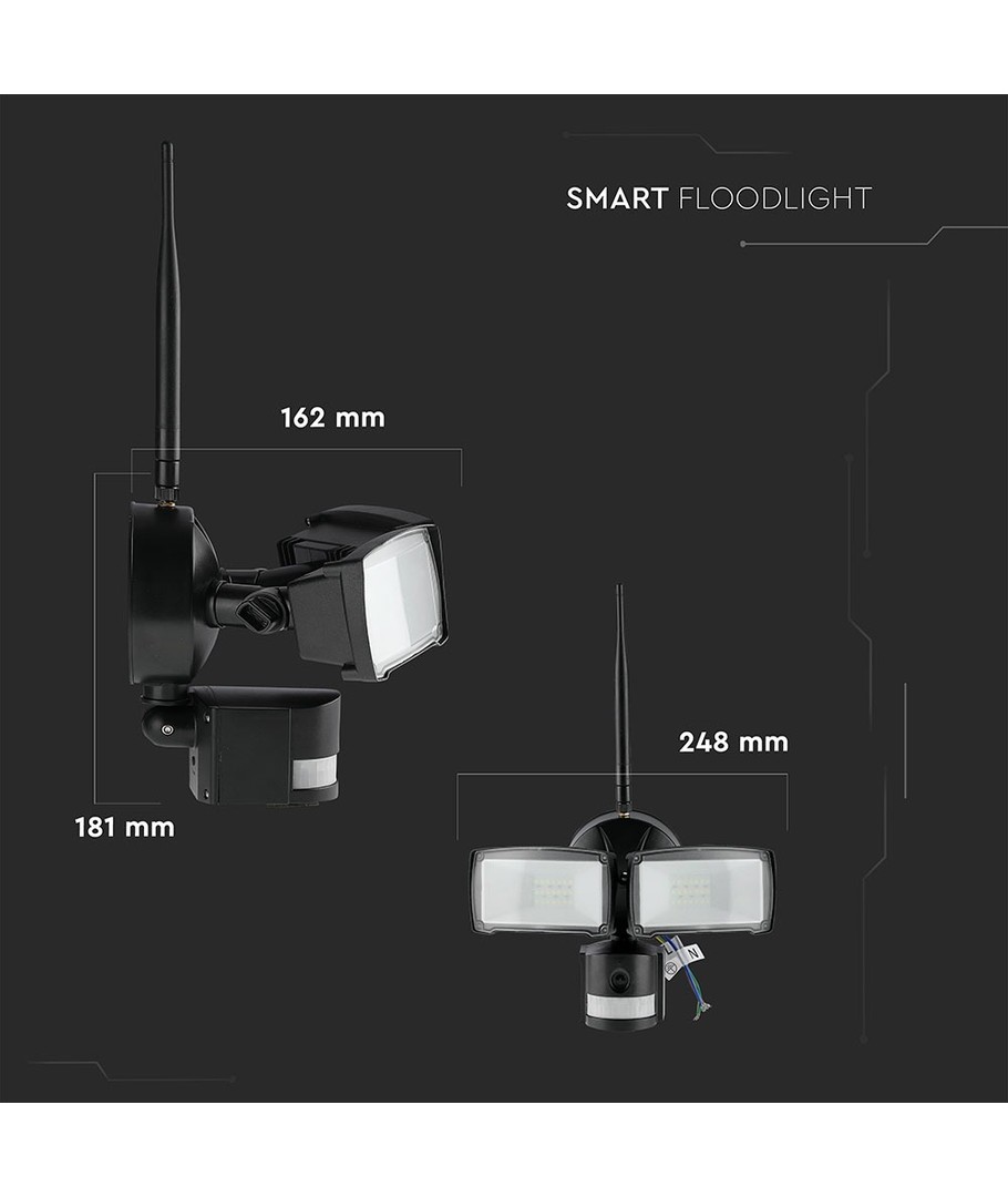 Den indbyggede WiFi-funktion giver dig mulighed for at forbinde og styre lyset fra dine enheder, mens det integrerede kamera tilføjer ekstra sikkerhed ved at overvåge dine indendørs omgivelser. Lysfordelingen på 180 grader sikrer, at lyset spreder sig jævnt over rummet, og giver optimal belysning uden mørke områder.