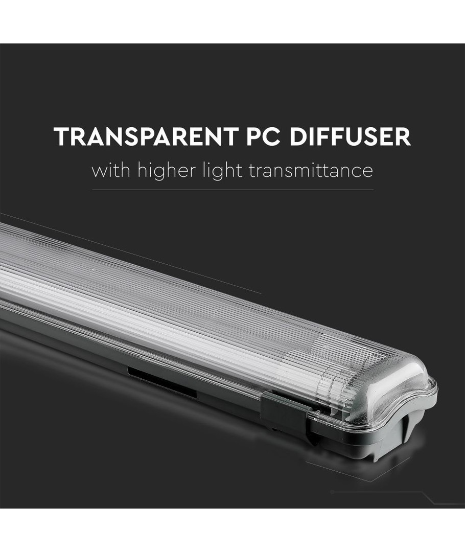 Lampen er udstyret med to 22W LED rør, hvilket giver en samlet effekt på 44W. Lyskilderne integreret i lampen sikrer jævn fordeling af lyset, hvilket skaber en behagelig belysning for enhver arbejdsplads eller udendørs projekt.