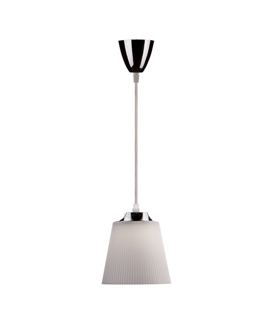 Oplev en kombination af elegant design og høj funktionalitet med denne loftlampe. Den kommer med et krom hus og en hvid skærm, som giver et moderne udtryk i ethvert rum.