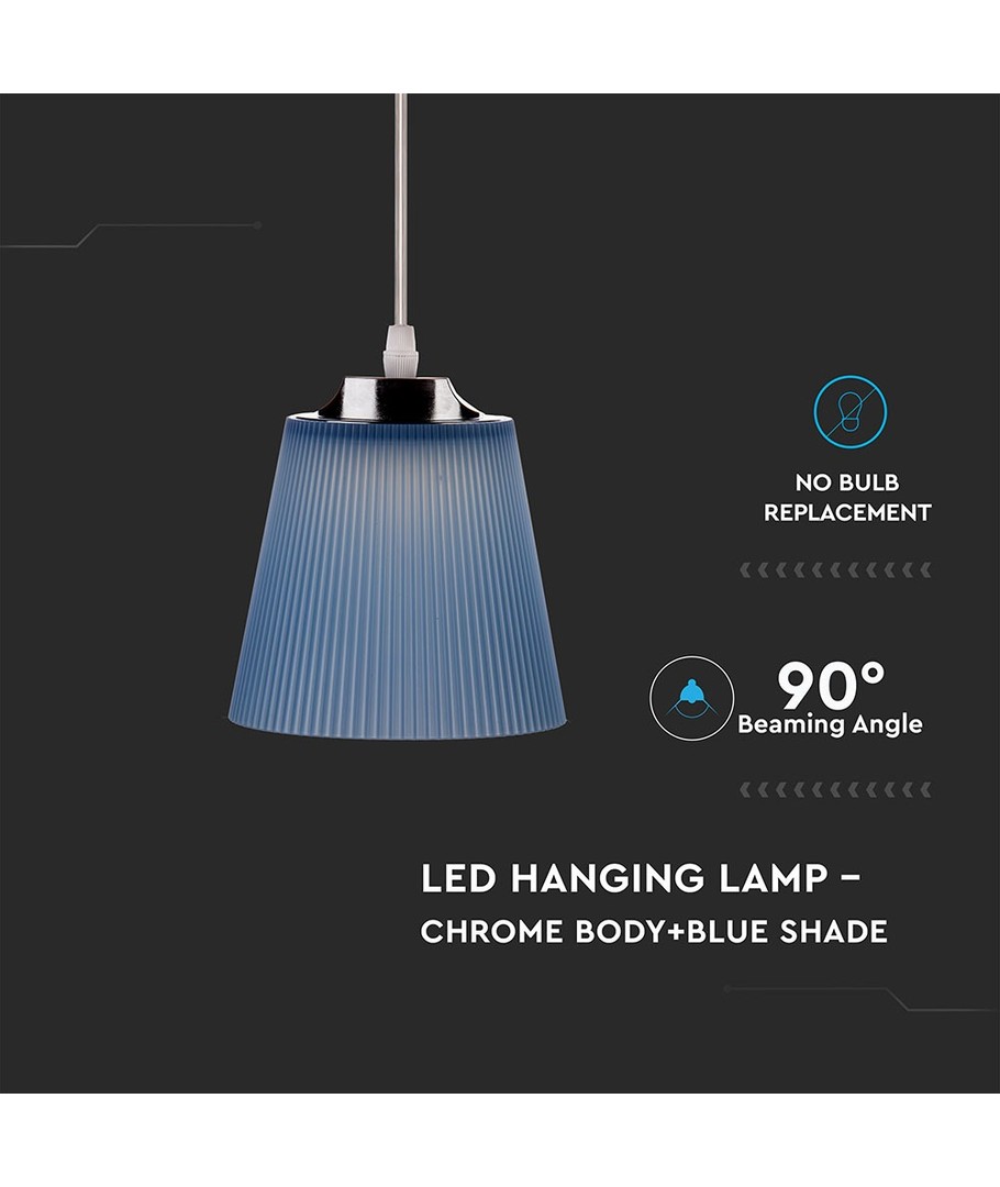 Oplev en 7W loftslampe med unik stil og imponerende funktionalitet, der vil oplyse dine rum med et indirekte og jævnt lys. Med et raffineret krom hus og en blå skærm, tilføjer denne loftslampe et moderne præg til enhver indretning.
