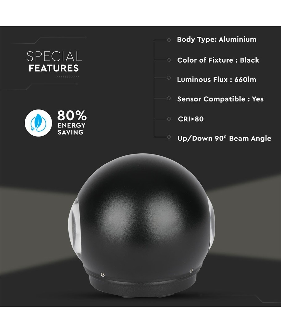 Væglampen har et op-ned lysdesign, der skaber en elegant lyseffekt på væggen. Den sorte farve tilføjer et moderne touch til enhver facade eller haveindretning.