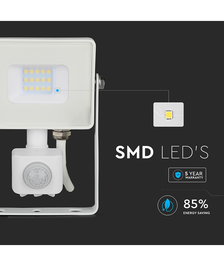 Denne projektør tilbyder en kraftfuld 10W effekt, hvilket sikrer en lysstyrke på 800 lumens. Med en spredning på 100 grader garanterer den en jævn fordeling af lyset.