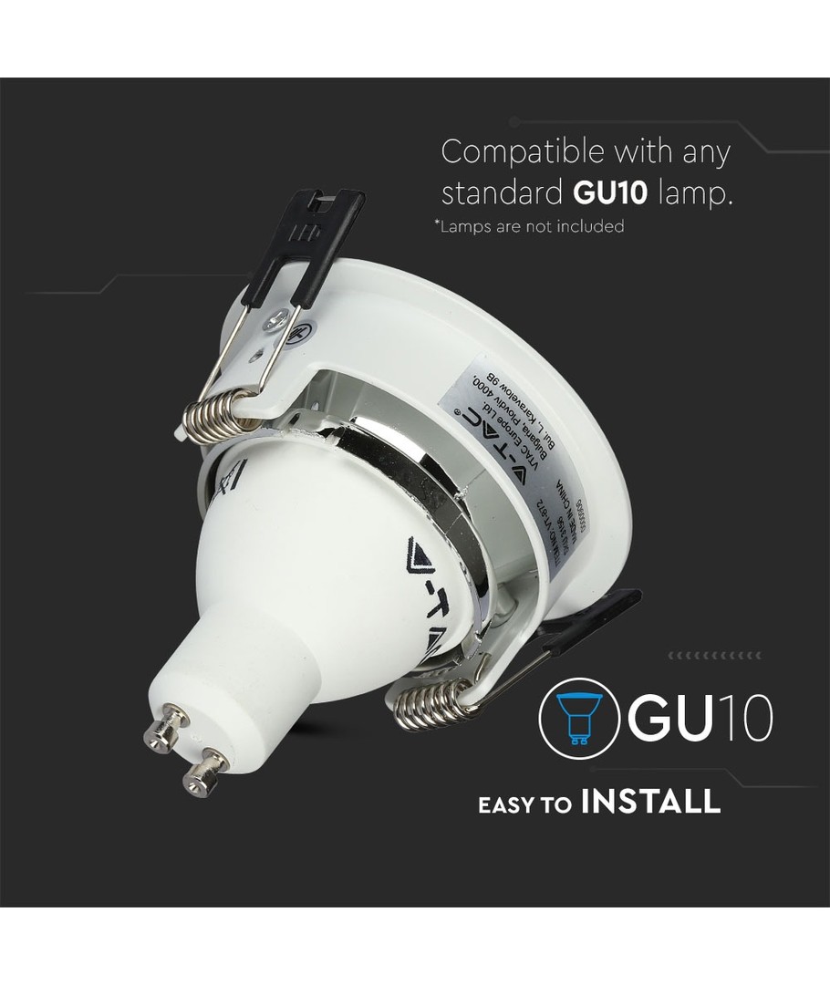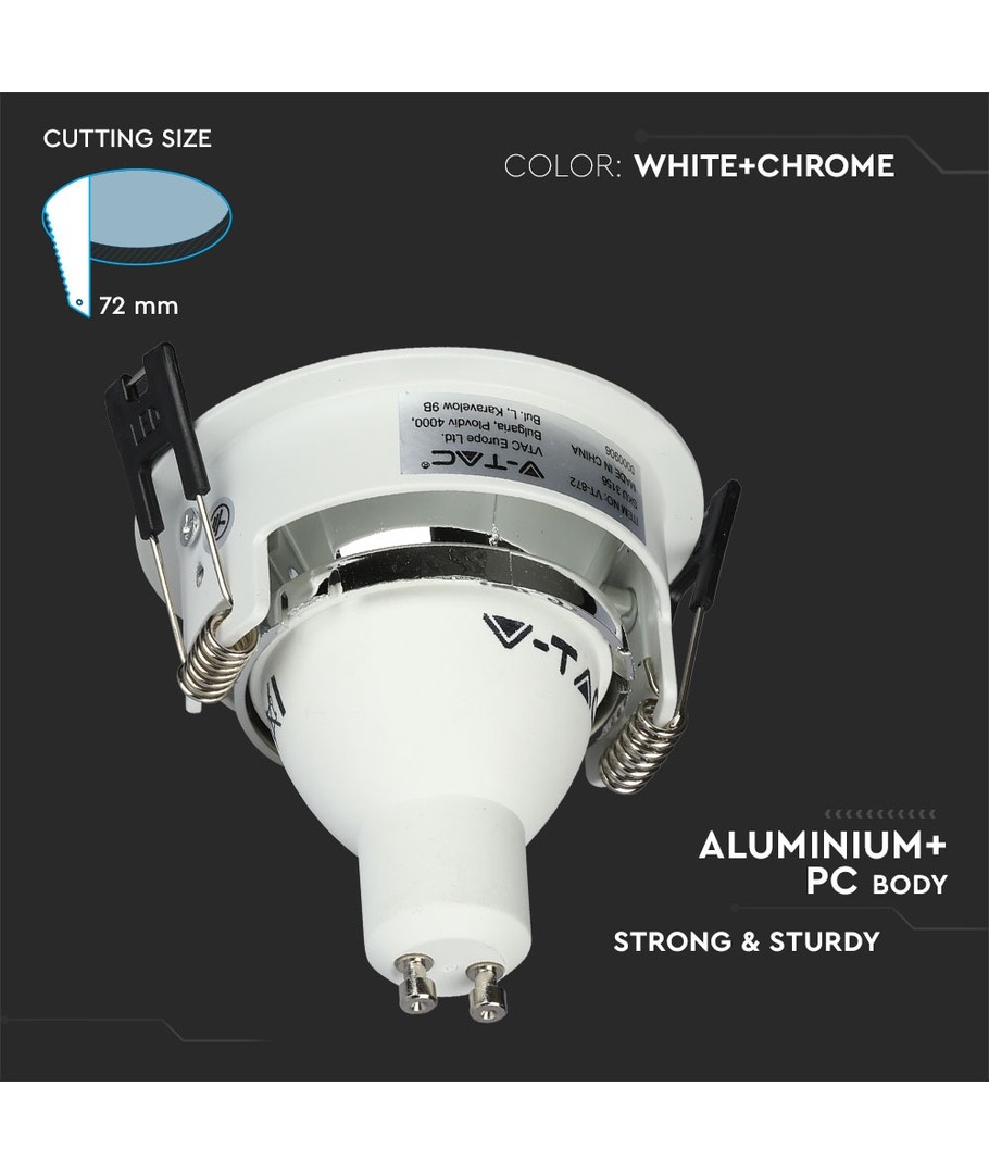 GU10 indbygningsspot - Rund, hvid/krom, aluminium, hul: Ø7,2 cm, IP20 indendørs V-TAC Udvid