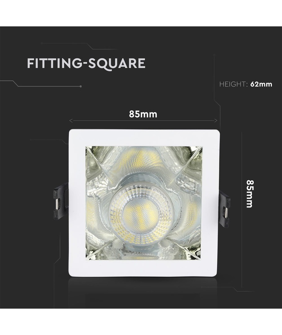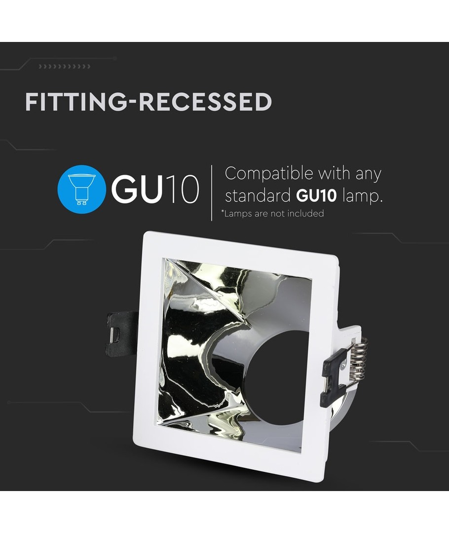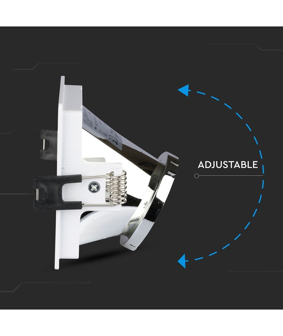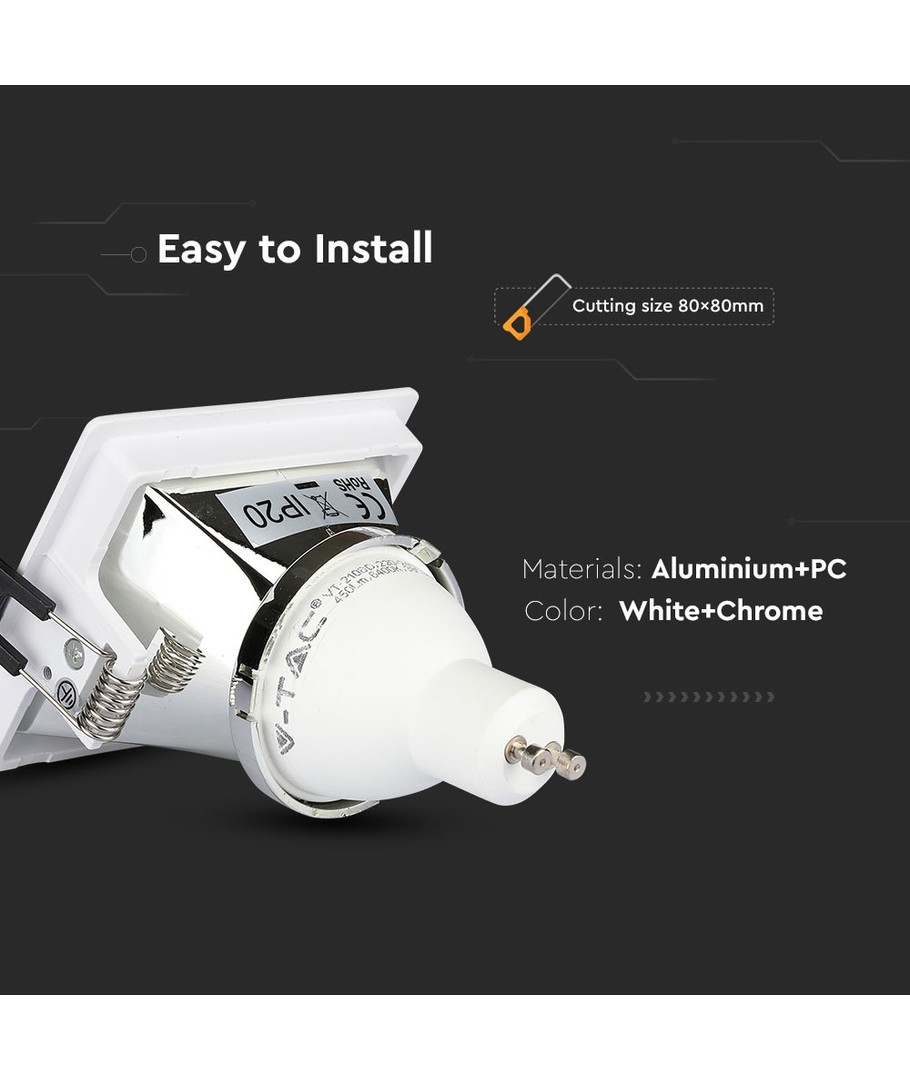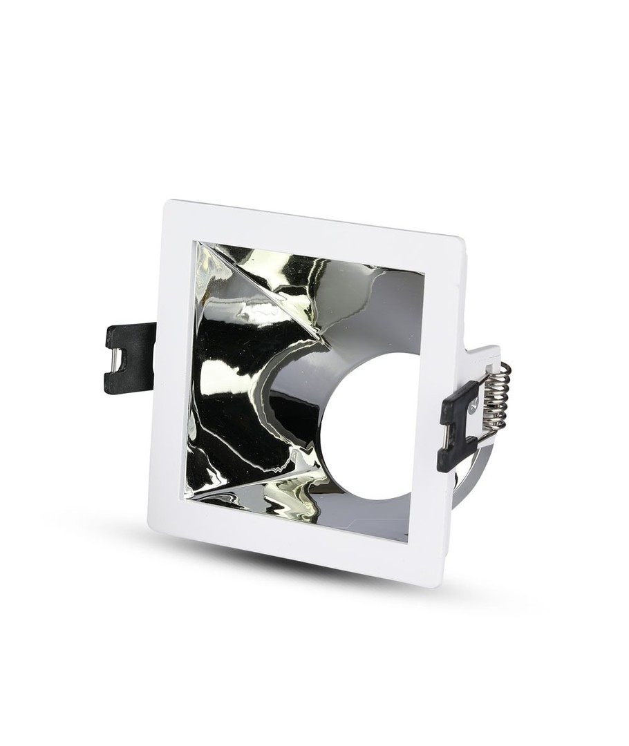 GU10 indbygningsspot, kvadratisk - Hvid/krom, aluminium, hul: 80x80 mm, uden lyskilde V-TAC Udvid