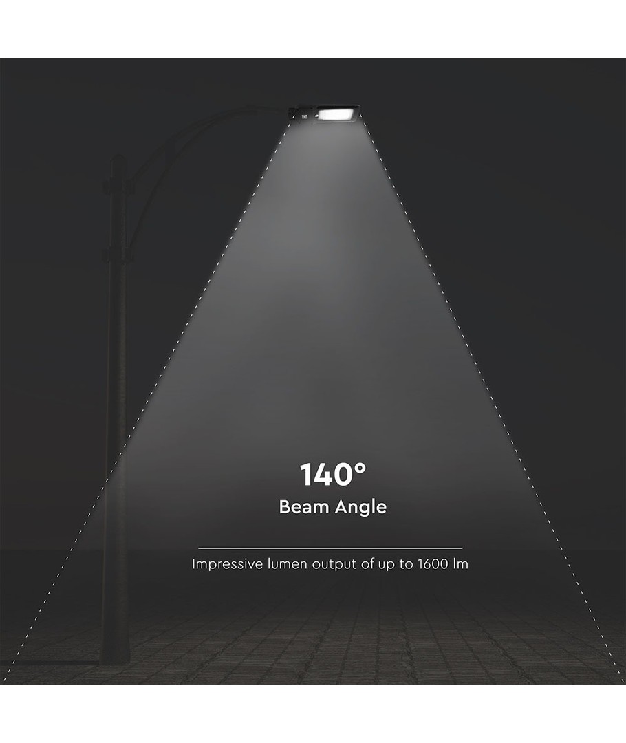 Lysstyrke på imponerende 1600 lumens giver god synlighed. Den høje spredningsgrad på 140/70 grader sikrer en jævn fordeling af lyset, perfekt til større arealer.