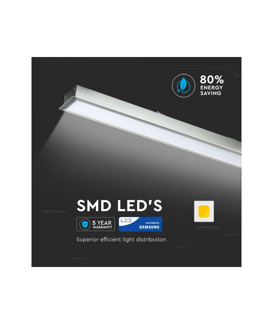Dette LED lineær lys tilbyder en effektivitet på 40W med lys styrke på 3200 lumens, hvilket sikrer kraftfuld og jævn belysning. Dets høje spredning på 120 grader garanterer en fejlfri lysfordeling i dit rum.