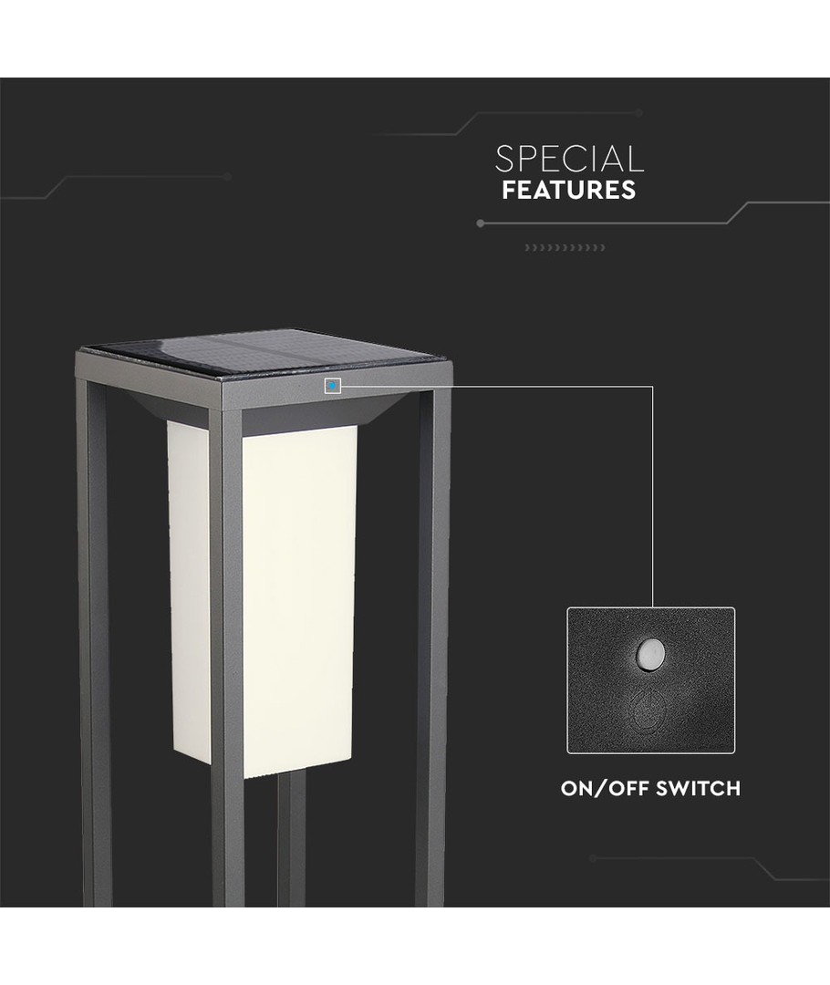 Oplev en kombination af effektivitet og stil med denne grå 2W LED Solar Bollard. Udstyret med en Samsung LED-chip, leverer denne solcellelampe en lysstyrke på 280 lumens med en bred spredning på 120 grader, hvilket sikrer en jævn fordeling af lyset.
