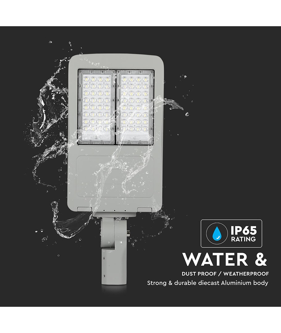 Den effektive passive køling og kvalitetskomponenter garanterer minimal reduktion i lysstyrken over tid, mens konstruktionens holdbarhed er understøttet af en IP65-certificering, der beskytter mod vandstænk og regn. Vælg denne gadelampe for langvarig og pålidelig udendørsbelysning.