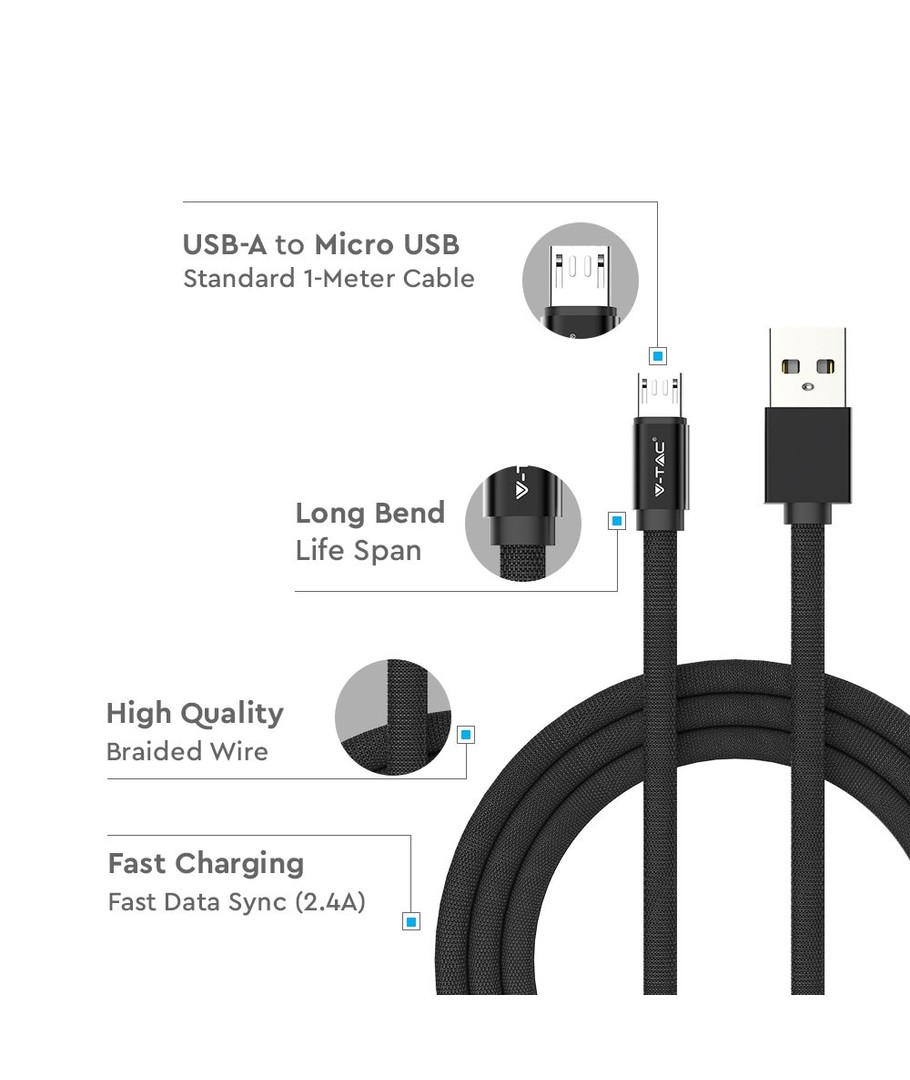 Oplev alsidighed og holdbarhed med vores MicroUSB 1m stofkabel i Sort, designet til at imødekomme både opladnings- og datatransmissionsbehov.