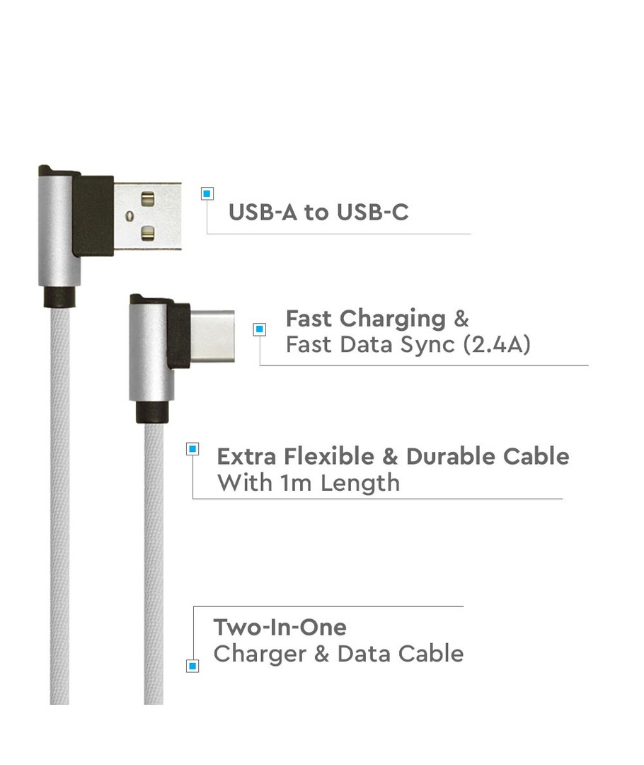 1M Type-C USB Kabel L-Type fra Diamond Serien tilbyder en pålidelig og holdbar løsning til dine opladnings- og synkroniseringsbehov.