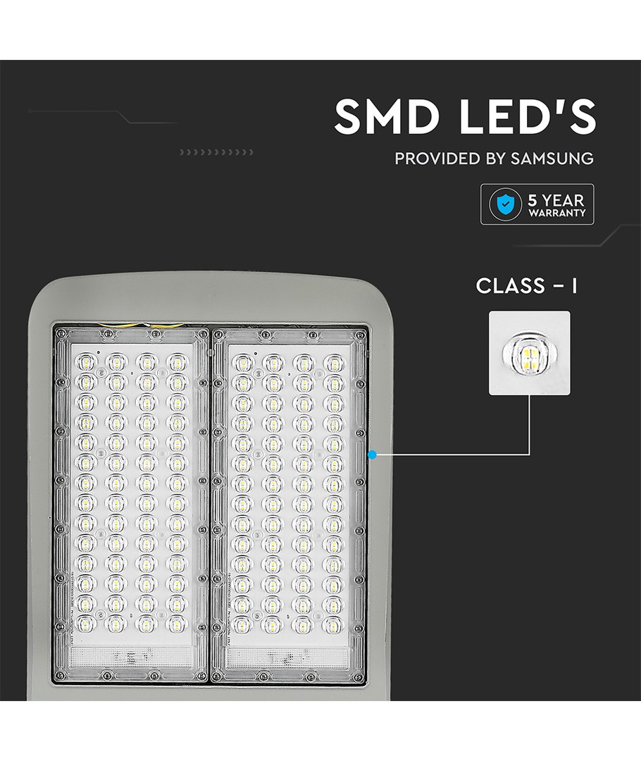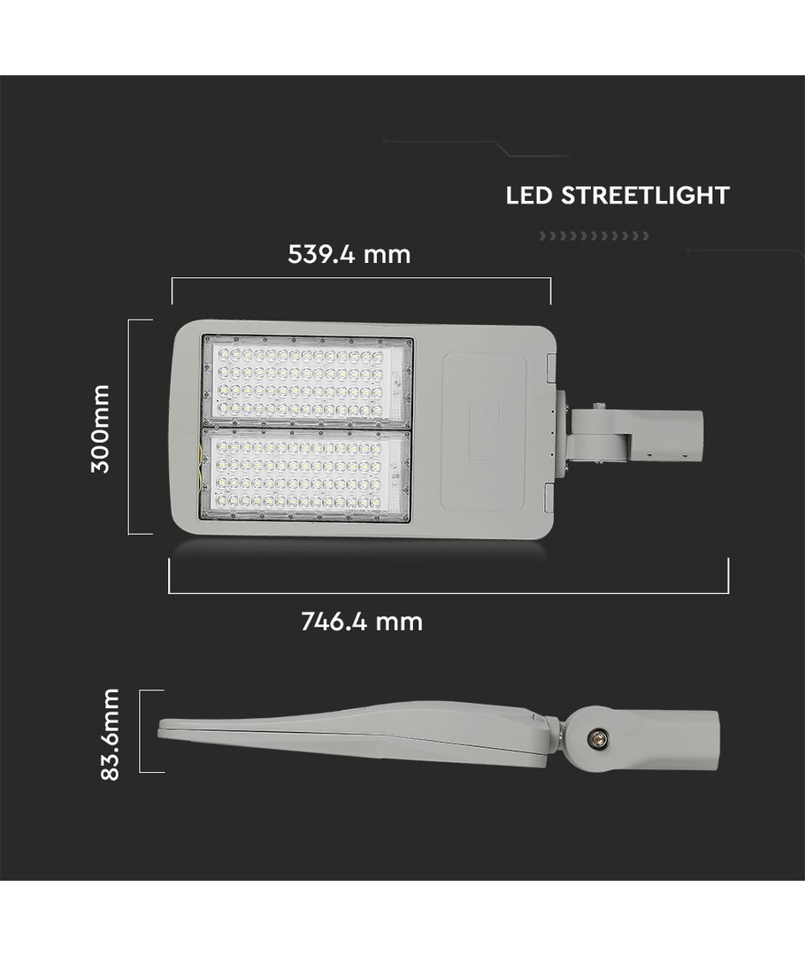 Oplev kraftig belysning med denne 150W LED gadelampe, der er ideel til udendørs brug. Udstyret med en Samsung LED chip, leverer denne lampe en imponerende lysstyrke på 21.000 lumens med høj spredning på 153/70 grader, hvilket sikrer en jævn og bred fordeling af lyset.
