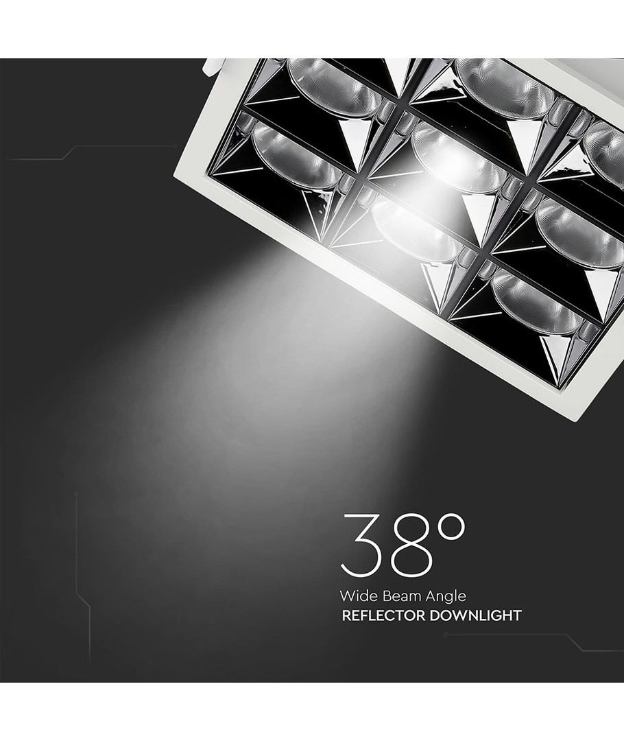 Oplev en lysstyrke på 2880 lumens med denne high-performance downlight. Med en effekt på 36W og en lysspredning på 38 grader, sikrer denne downlight et fokuseret og kontrolleret lys, der er ideelt til forskellige belysningsbehov.