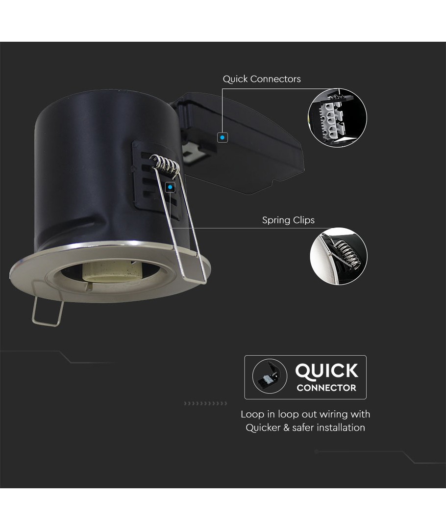 Opgrader din belysning med denne brandsikre GU10 downlight, der kombinerer stil og funktionalitet. Med et elegant nikkelfinish er den ideel til både moderne og klassiske indretningsmiljøer.