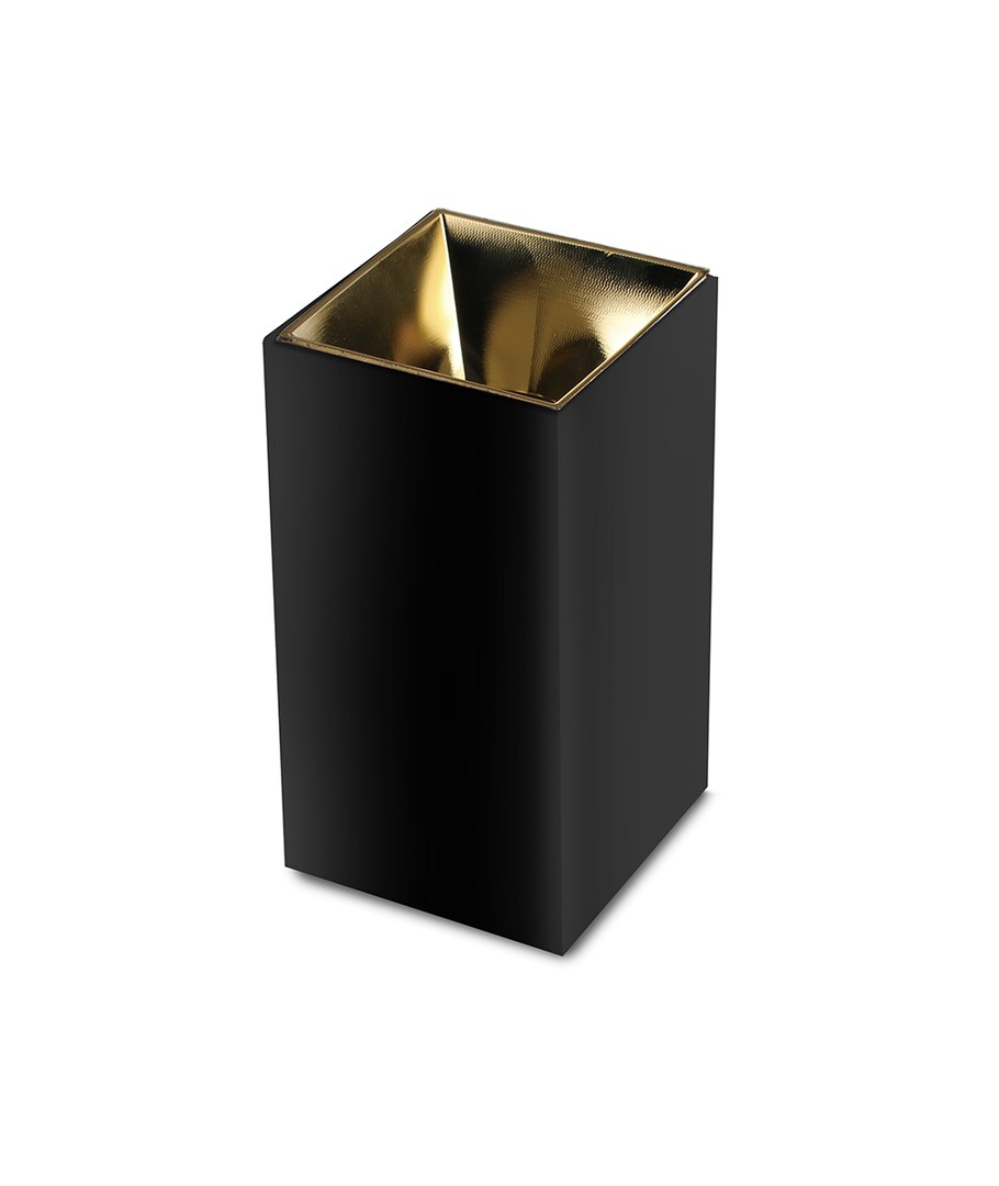 Oplev den perfekte kombination af moderne design og funktionalitet med denne firkantede GU10 lampe. Med sin unikke sort+guld farvekombination bringer den både stil og elegance til ethvert rum, den placeres i.
