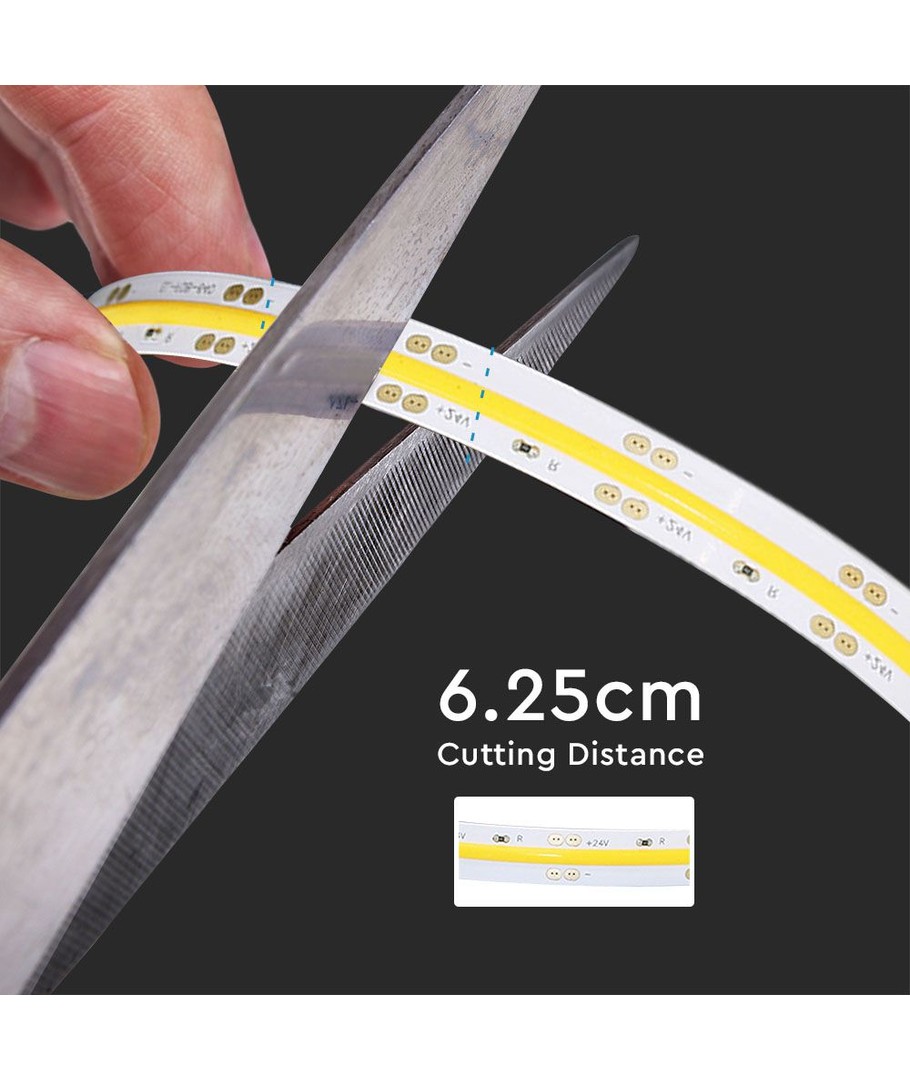 Den 512 LED COB stribelysliste har en høj lysspredning på 120 grader, hvilket sikrer en jævn fordeling af lyset over det ønskede område.