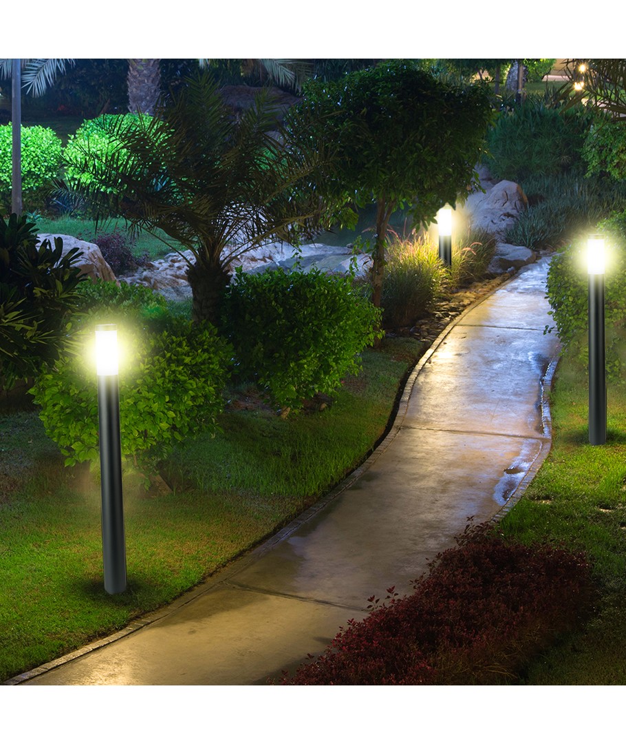 Forvandl din udendørs belysning med denne stilfulde og funktionelle pullertlampe. Dens moderne design i rustfrit stål med en sort finish passer perfekt ind i enhver have eller indkørsel, skabende et både moderne og tidløst look.