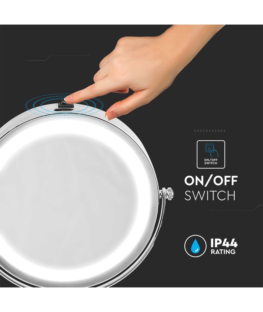 Med sin slanke kromfinish passer denne spejllampe perfekt ind i moderne indretninger, hvilket tilføjer et strejf af elegance og funktionalitet til dine rum.