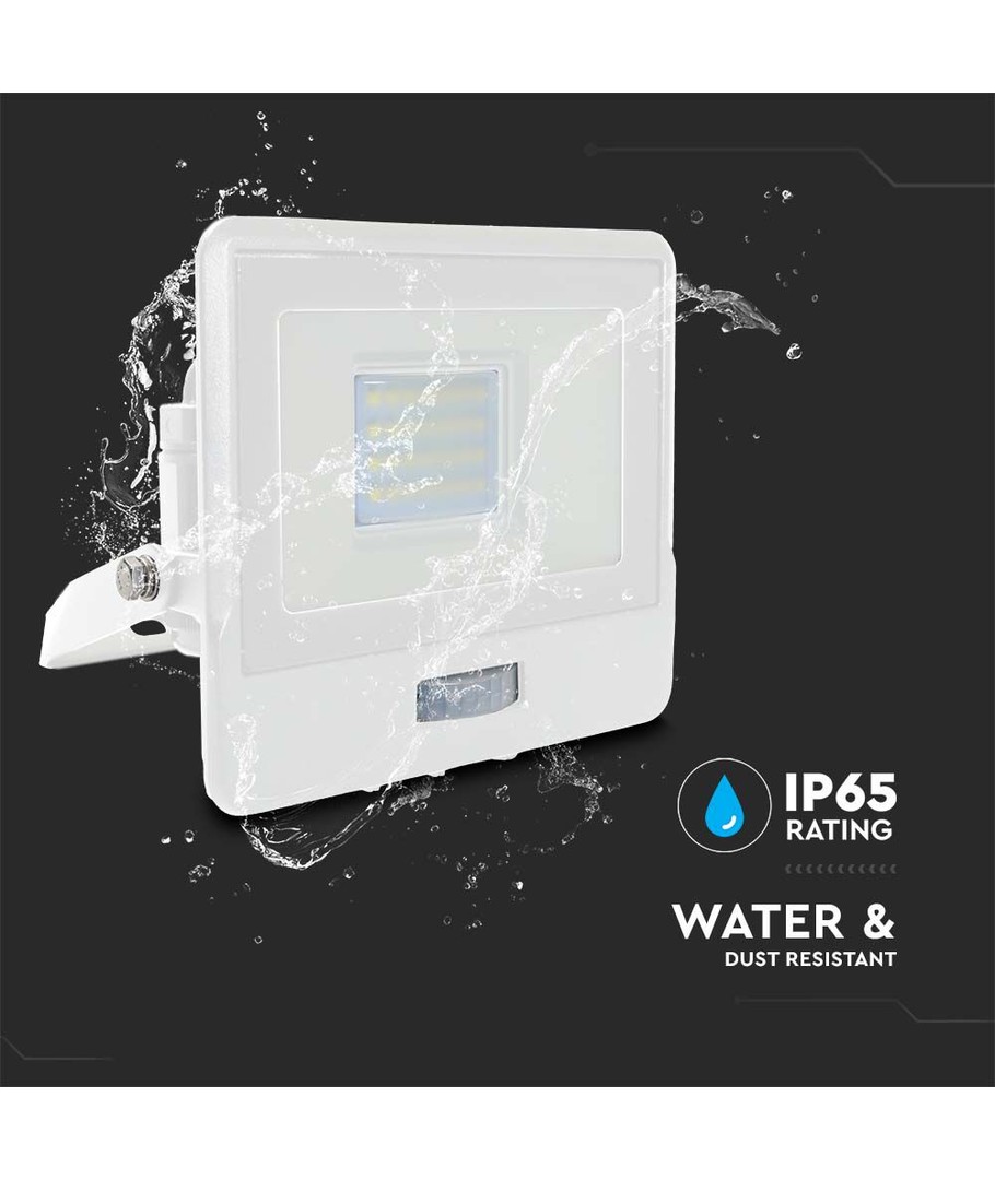 Med en IP65-klassificering er projektøren vejrbestandig og kan modstå vandstænk og regn, hvilket gør den velegnet til udendørs brug hele året rundt. Dens robuste design i et hvidt hus sikrer langtidsholdbarhed.