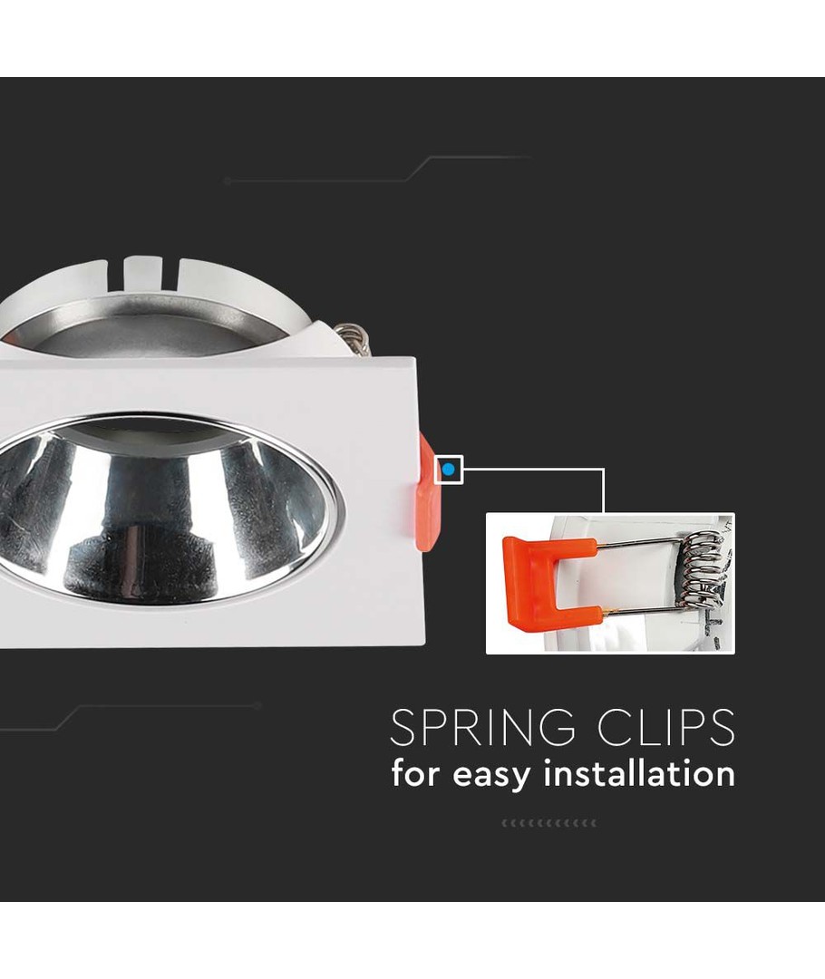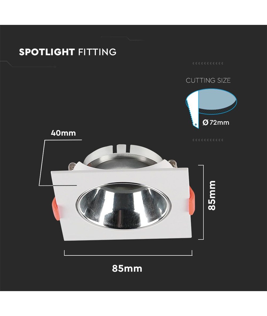 Oplev et moderne og stilfuldt belysningsvalg med denne kvadratiske GU10 lampe. Designet er raffineret med en hvid ramme og en krom reflektor, som tilføjer et strejf af elegance til ethvert rum. Denne lampe er en del af den anerkendte V-Tac Pro serie, hvilket sikrer både kvalitet og pålidelighed.