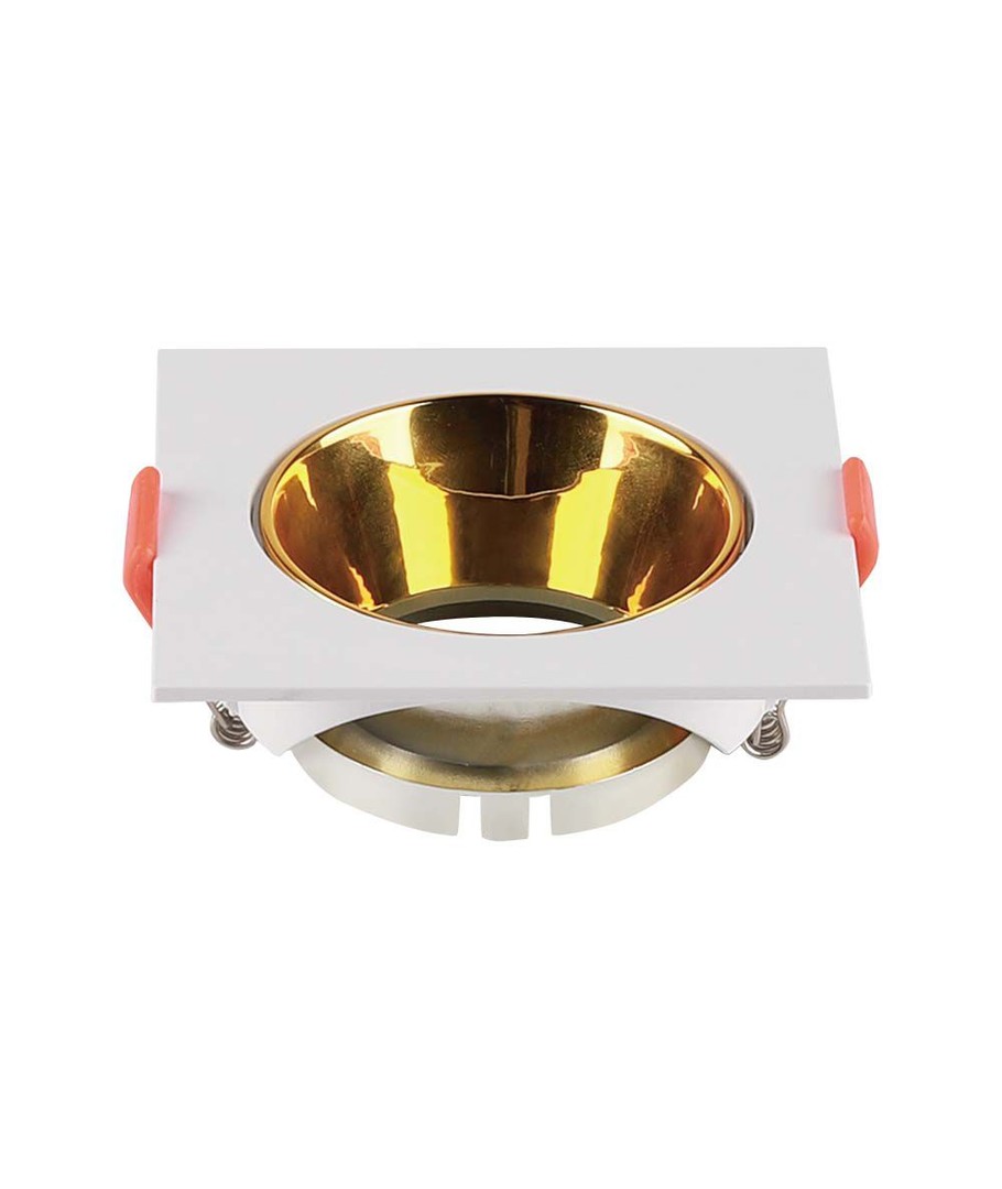 Skab en elegant atmosfære i dit hjem eller kontor med denne stilfulde belysningsløsning. Designet med en firkantet hvid ramme og en guld reflektor, tilføjer denne lampe et moderne twist til enhver indretning.