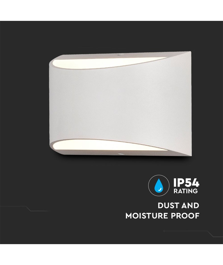 Designet til at modstå dagligdags udfordringer har væglampen en IP54-klassificering, hvilket betyder, at den tåler fugtig luft og vandstænk på fronten. Perfekt til både indendørs og udendørs brug, hvor der er behov for pålidelig belysning.