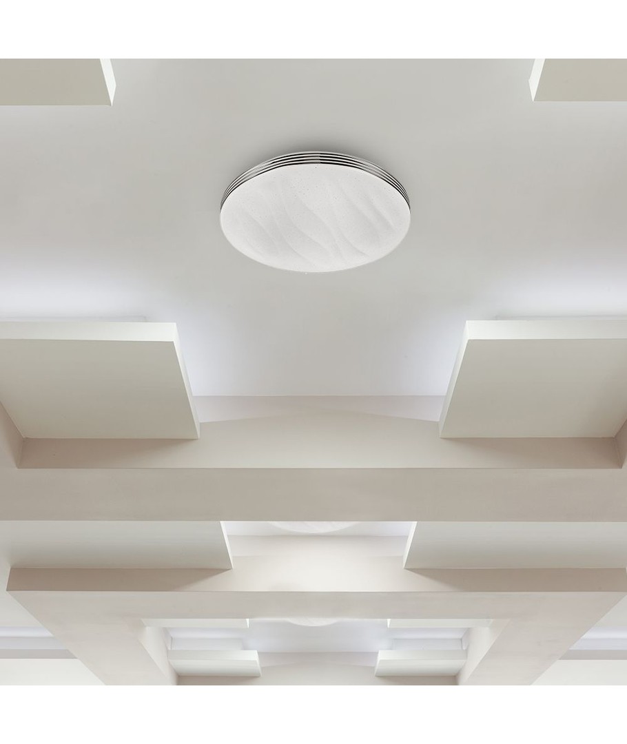 Det unikke bølgedæksel tilføjer et strejf af modernitet og elegance, hvilket gør denne lampe til et prominent stykke i dit hjem. Uanset om du ønsker et behageligt lys til dagligdagen eller en mere intens belysning til specifikke aktiviteter, leverer denne designer loftlampe præcist det.