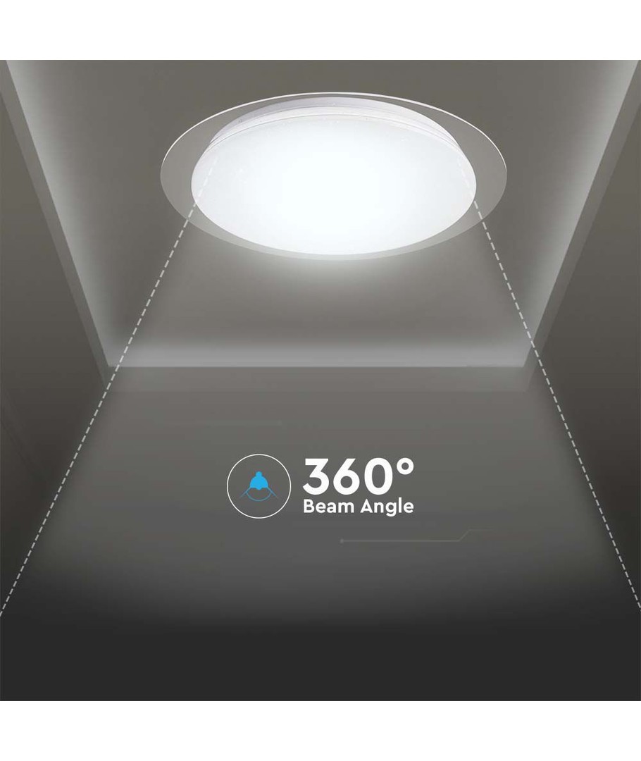 Lampen er designet med en 360 graders spredningsevne, hvilket garanterer en jævn fordeling af lys uden skarpe skygger. Dette gør den til den ideelle løsning for både funktionel belysning og stemningsbelysning.