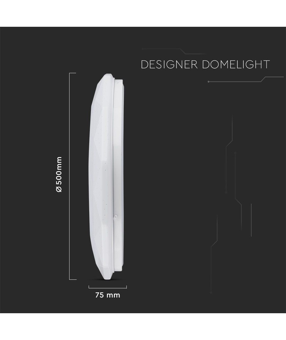 Egenskaber:Lampen er designet med en bredde og højde på 500 x 75 mm, hvilket giver den et slankt og moderne look, der passer til både små og store rum. Den 360 graders spredning sikrer, at lyset fordeles jævnt, hvilket skaber en behagelig og indbydende belysning.