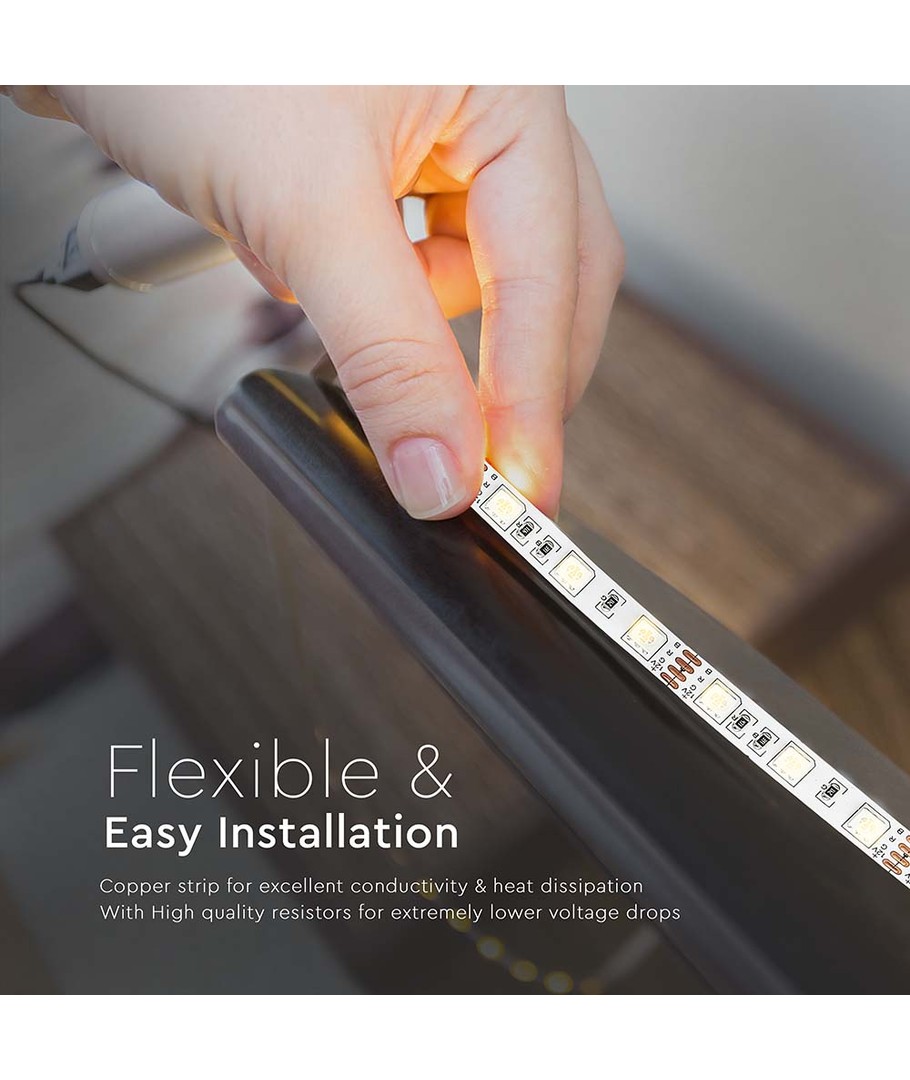 Den renrøde farve og den høje lyskvalitet giver et elegant og professionelt look, der passer til enhver indendørs indretning. Brug LED-striben til at fremhæve arkitektoniske detaljer eller skabe en behagelig atmosfære i hjemmet eller på arbejdspladsen.