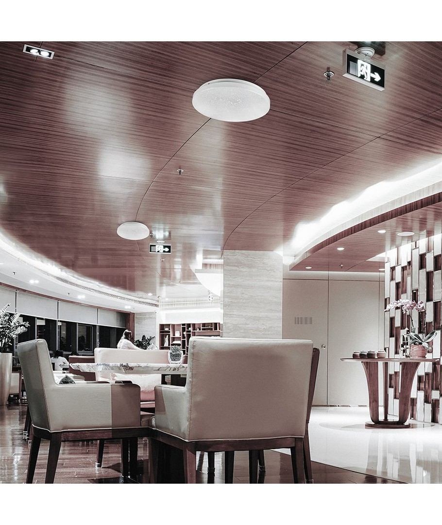 Denne stilfulde lampe er designet med et rundt stjernedæksel, der tilføjer et unikt udseende til ethvert rum. Det brede lys gør den ideel til større rum, hvor jævn belysning er nødvendig, såsom stuer og kontorlokaler. Den høje spredning på 360 grader sikrer en ensartet fordeling af lyset, der eliminerer skygger og skaber en behagelig atmosfære.