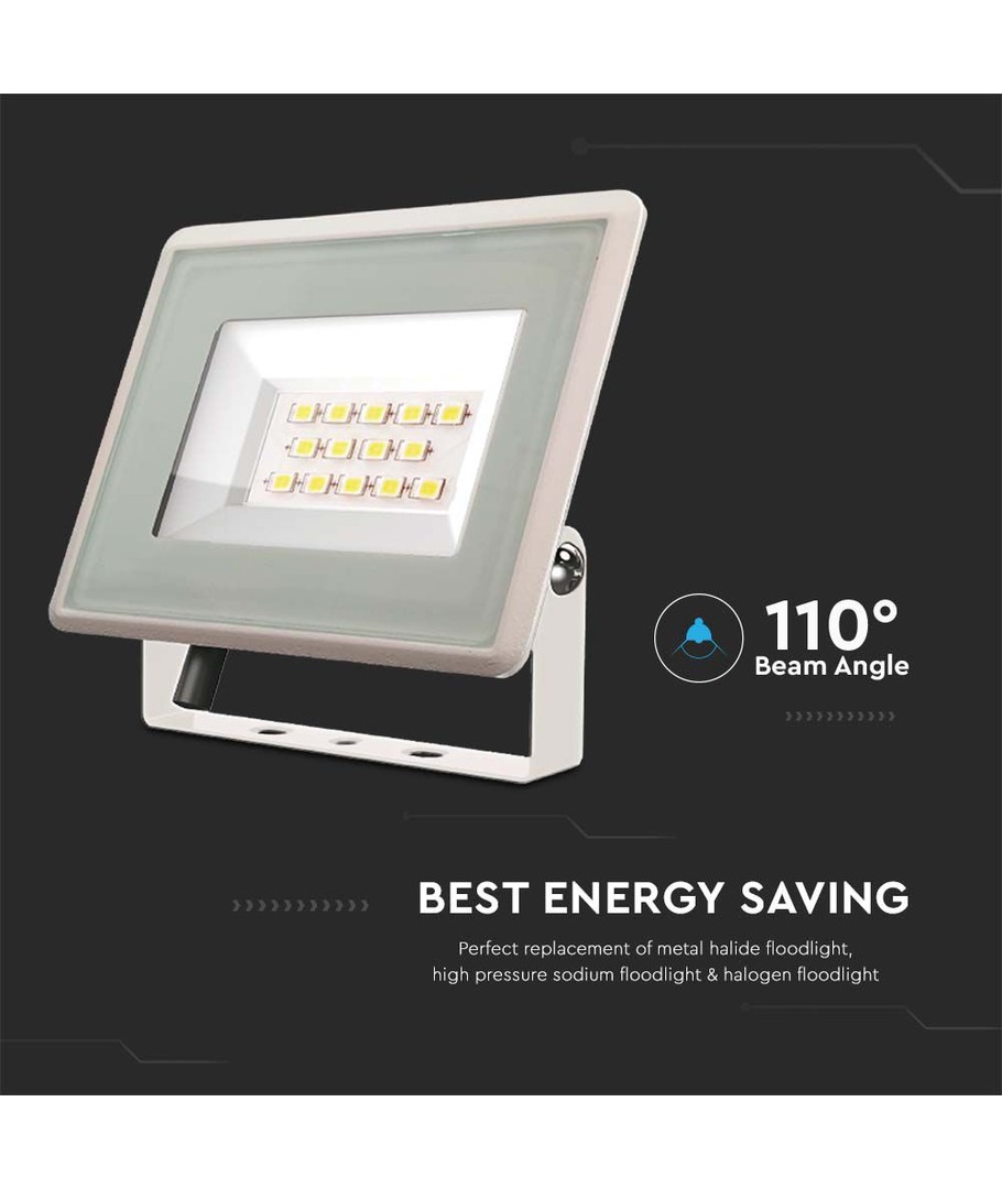 Oplev kraftfuld belysning med denne 10W projektør, perfekt til både professionelle og private brugsscenarier. Denne projektør tilbyder en lysstyrke på 750 lumens og en høj spredningsvinkel på 110 grader, hvilket sikrer en jævn og effektiv fordeling af lyset på større områder.