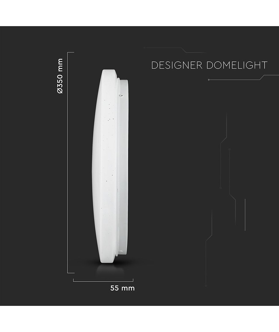 Oplev en ny dimension af belysning med denne 24W Kupelampe, designet til at pifte ethvert rum op med sit moderne og elegante look. Med en diameter på 350 mm og en tykkelse på blot 55 mm, passer denne lampe perfekt ind i både små og store rum.