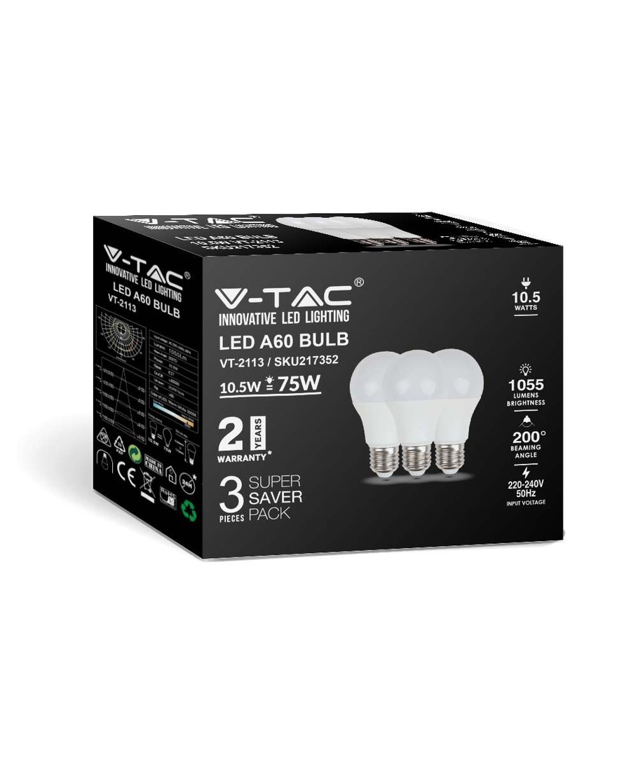 Med disse A60 LED-pærer får du høj kvalitet og holdbar belysning i en pakke med 3 stk. De er perfekte til at skabe et indbydende hjemmemiljø, samtidig med at de opretholder en lav energiforbrug.
