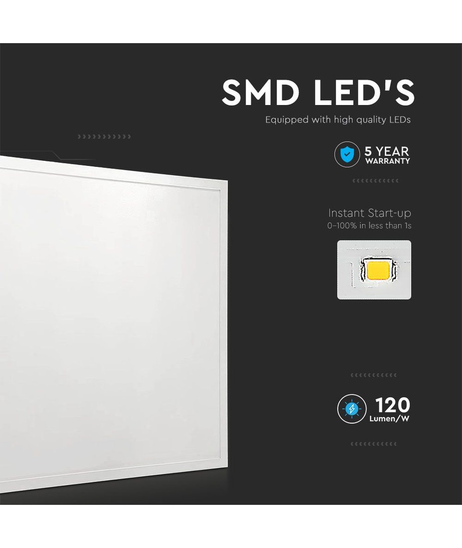 Dette 36W LED panel tilbyder en overlegen belysningsløsning med dimensionerne 595x595mm, perfekt til både erhvervsmæssig og dekorativ brug. Panelet er en del af den anerkendte V-Tac Pro serie, kendt for sin høje kvalitet og holdbarhed.