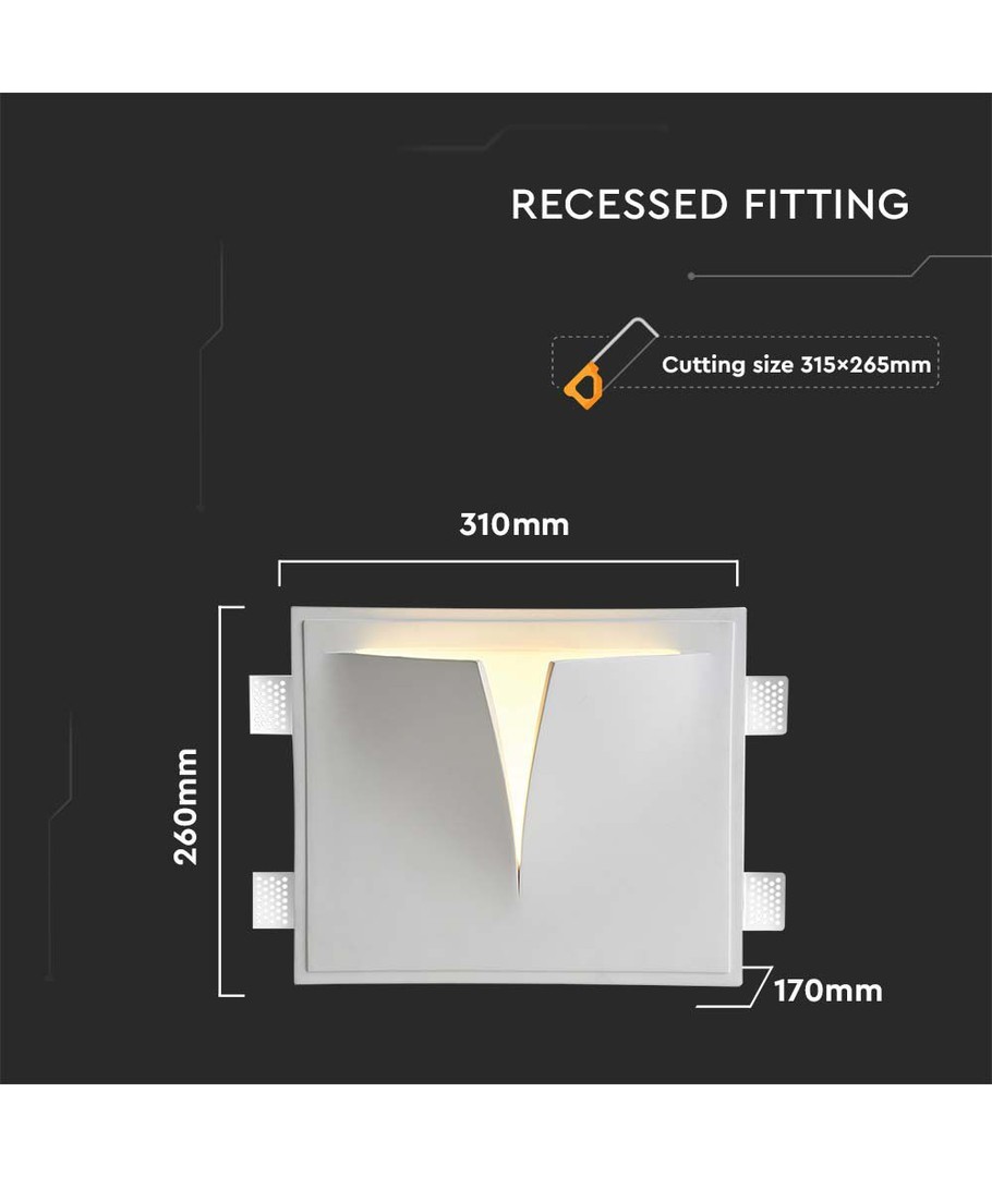 Med dimensioner på 310 x 170 x 260 mm og en nødvendig hul størrelse på 315x265 mm, passer denne lampe perfekt ind i både moderne og klassiske indretninger. Dens elegante hvide overflade tilføjer en forfriskende lethed til ethvert rum.