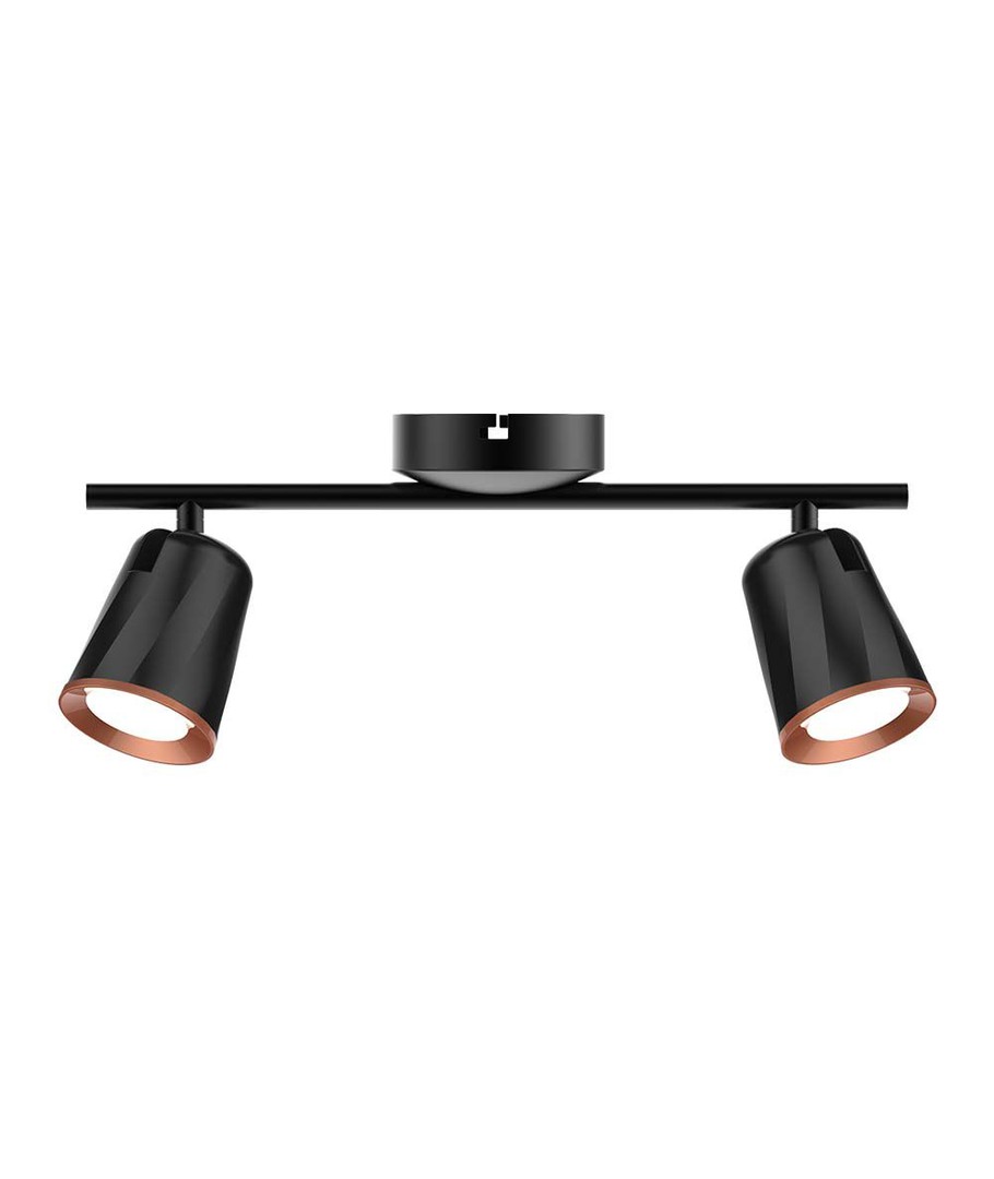 Lampens dimensioner er 405 x 100 x 115 mm, hvilket gør den diskret og stilfuld på væggen. Den sorte finish tilføjer et moderne touch, der passer ind i mange indretninger.