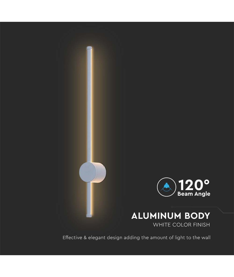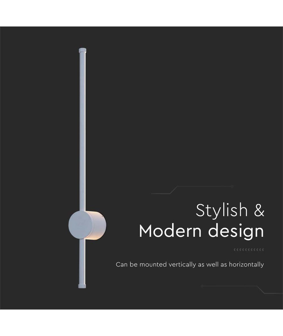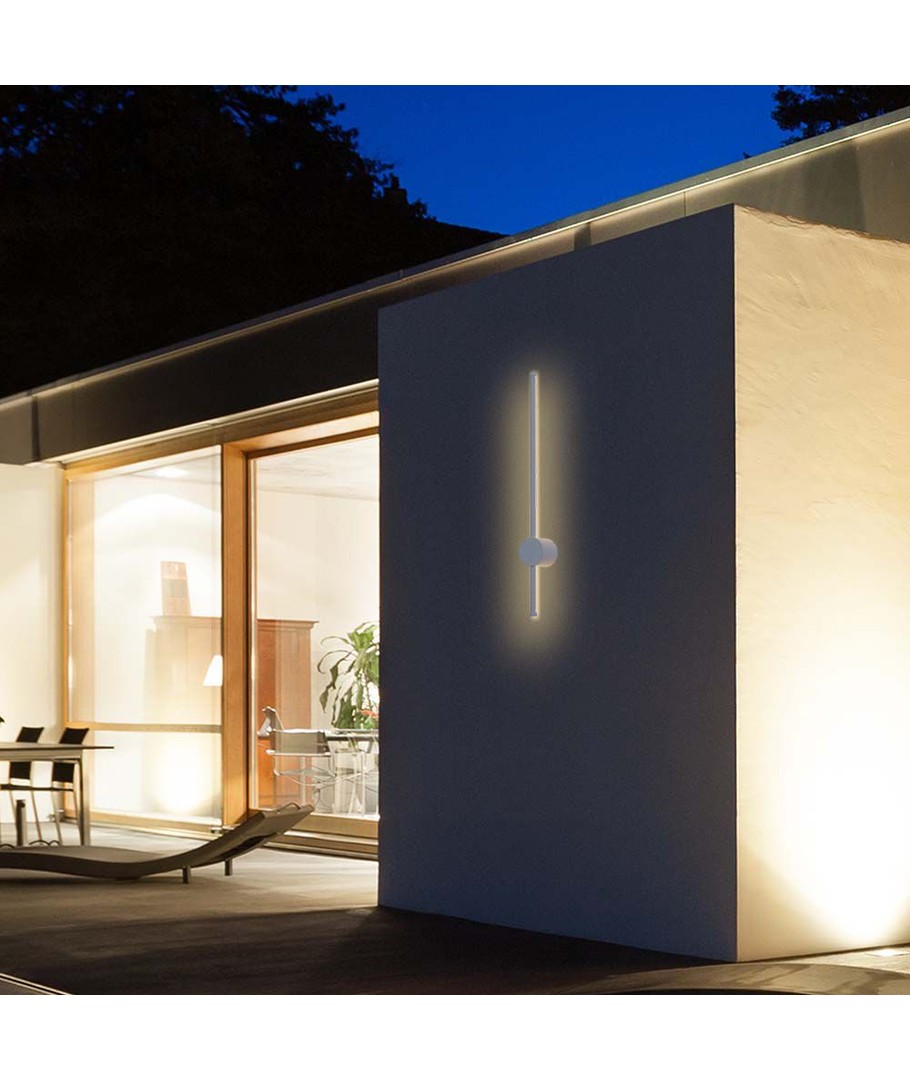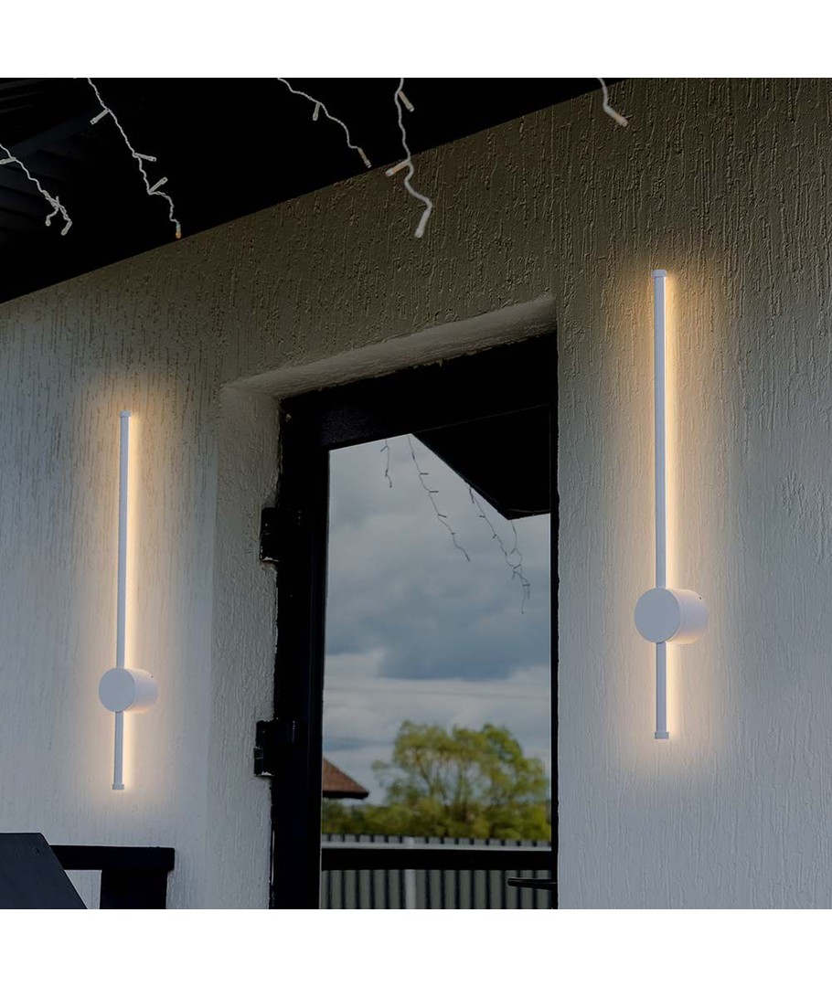 Designet i et stilrent hvidt hus, har lampen dimensionerne 650 x 16 x 72 mm, hvilket gør den både diskret og elegant. Dens IP65 klassificering garanterer, at den er fuldt ud anvendelig i udendørs omgivelser, da den tåler både vandstænk og regn.