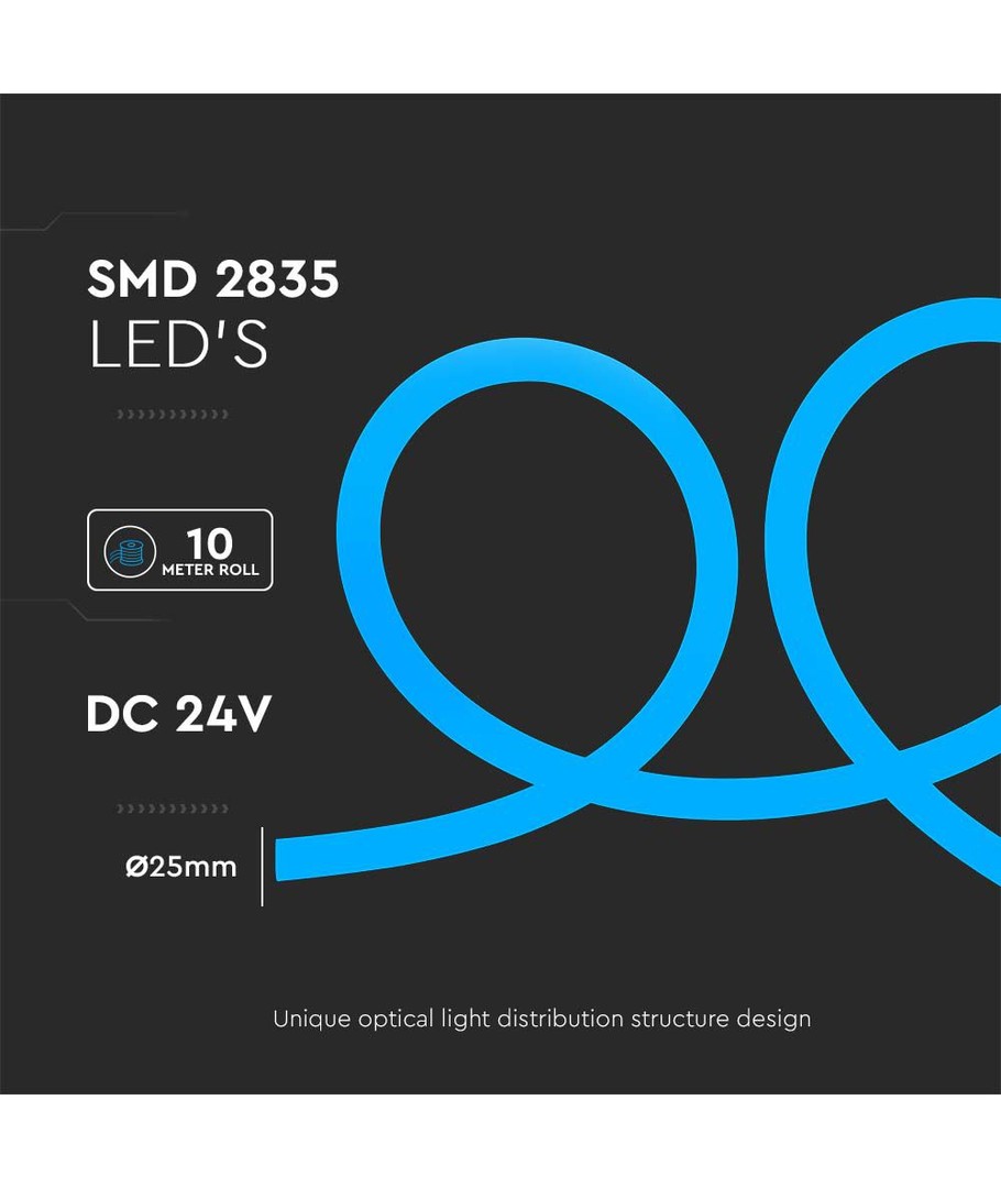 Med en længde på 10 meter på en rulle er denne neon flex alsidig og kan tilpasses til forskellige projekter, fra dekorative lysinstallationer til innovativ interiørdesign. Den er ideel til detailomgivelser, hjemmeindretning eller som en del af professionel scenebelysning.