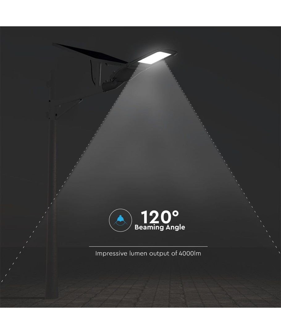 Oplev effektiv og holdbar belysning med dette 300W LED solcelle gadelys. Udstyret med Samsung LED chip, tilbyder denne lampe en lysstrøm på 3000 lumens med en bred spredningsvinkel på 120 grader, der sikrer en jævn og omfattende lysdækning.