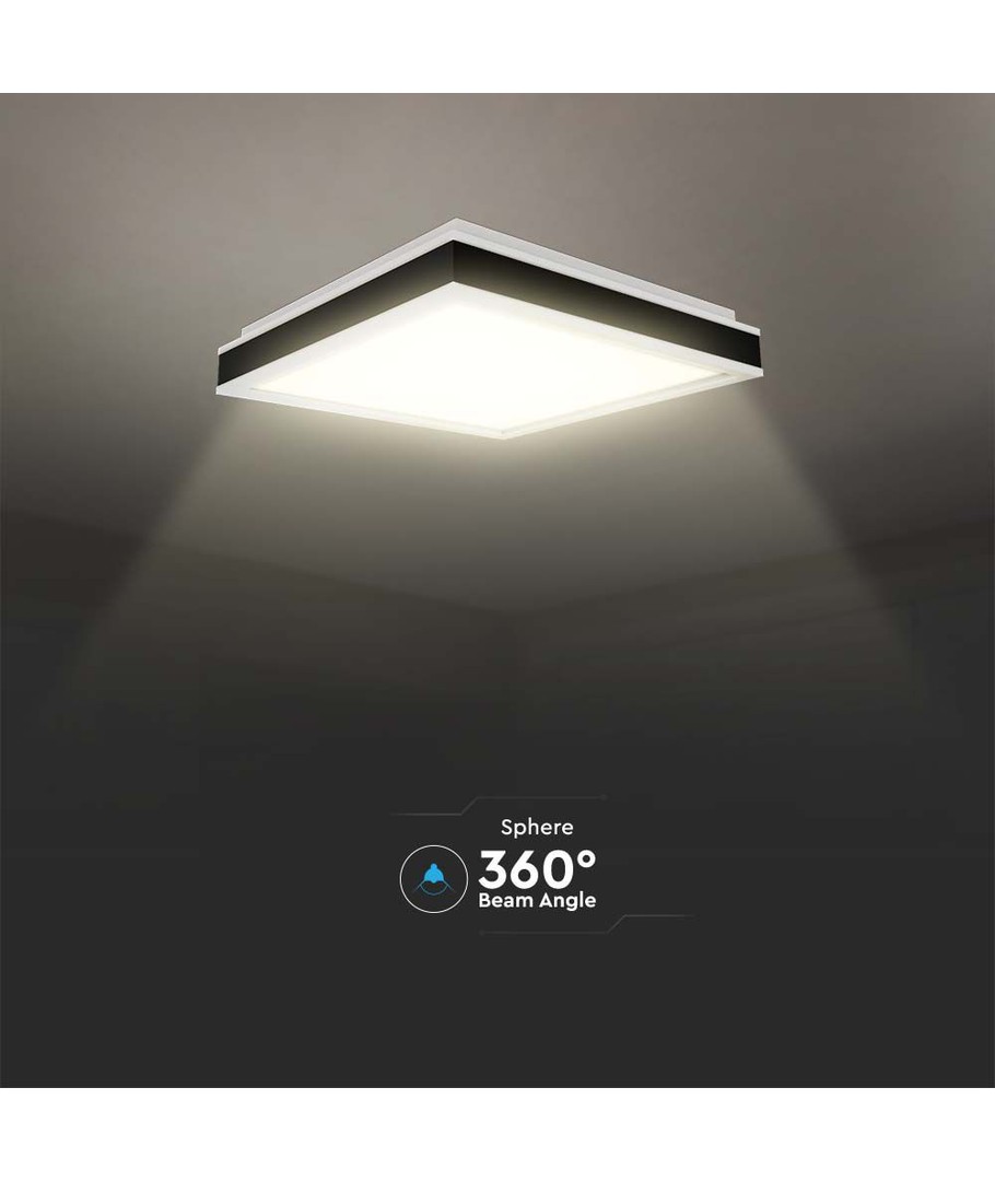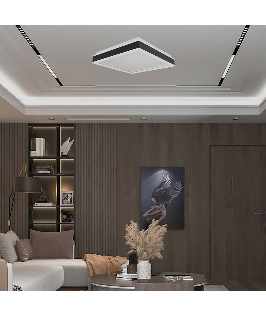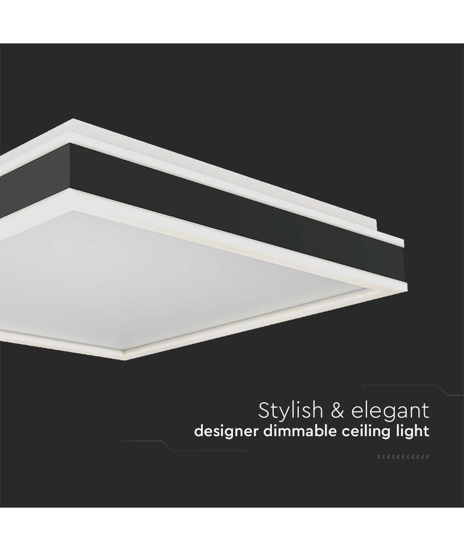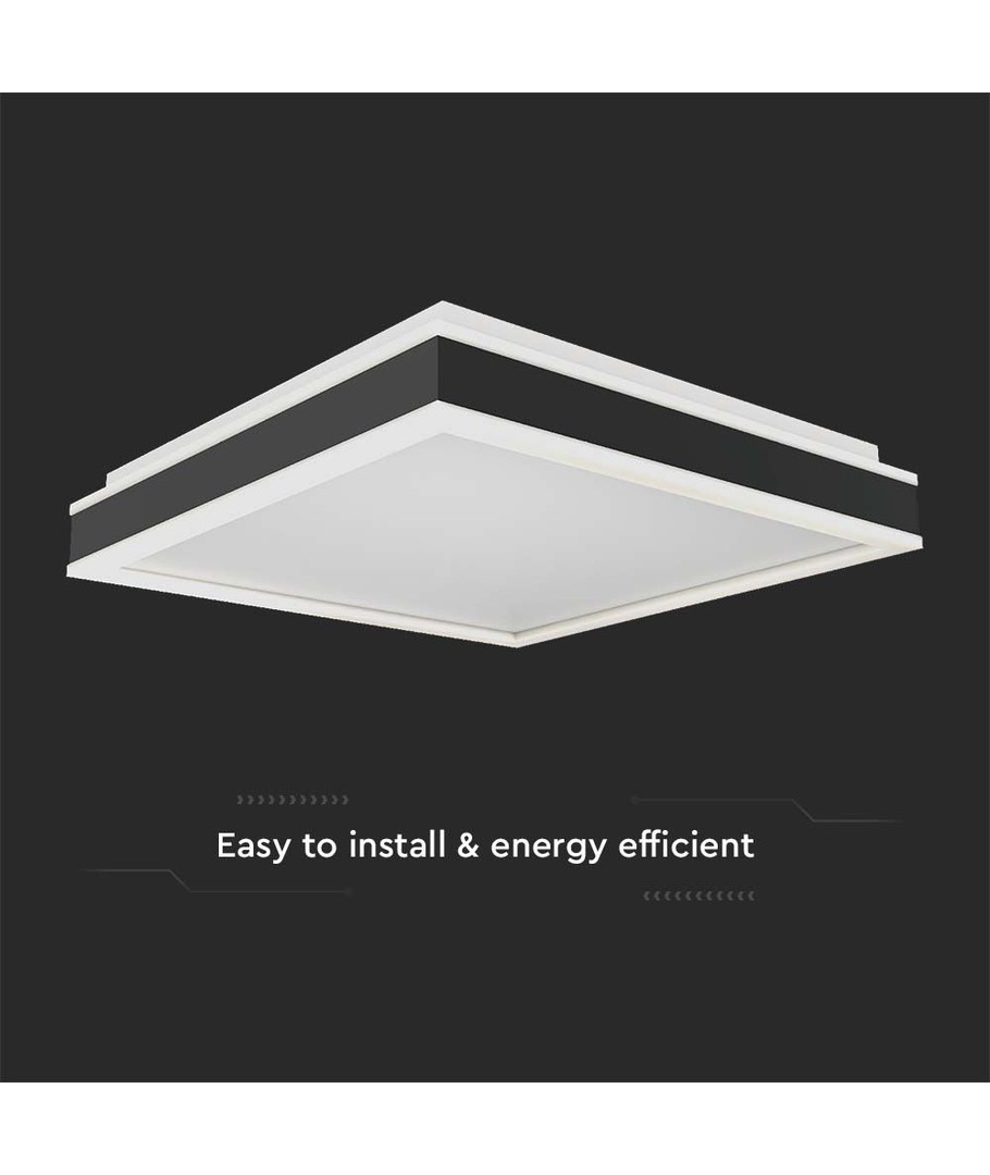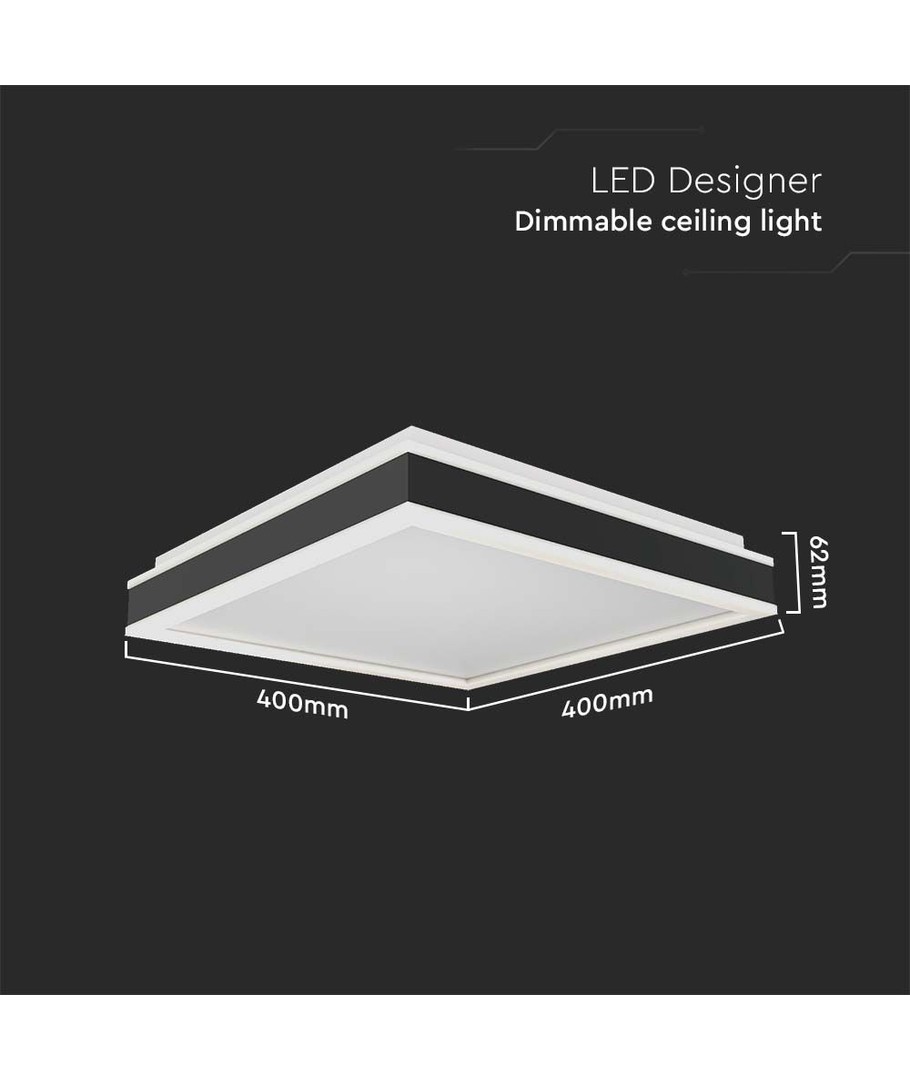 Lampens elegante sort farve gør det muligt for den at passe ind i enhver moderne indretning. Med dimensioner på 400 x 62 x 400 mm er den kompakt nok til at kunne bruges i både store og små rum.